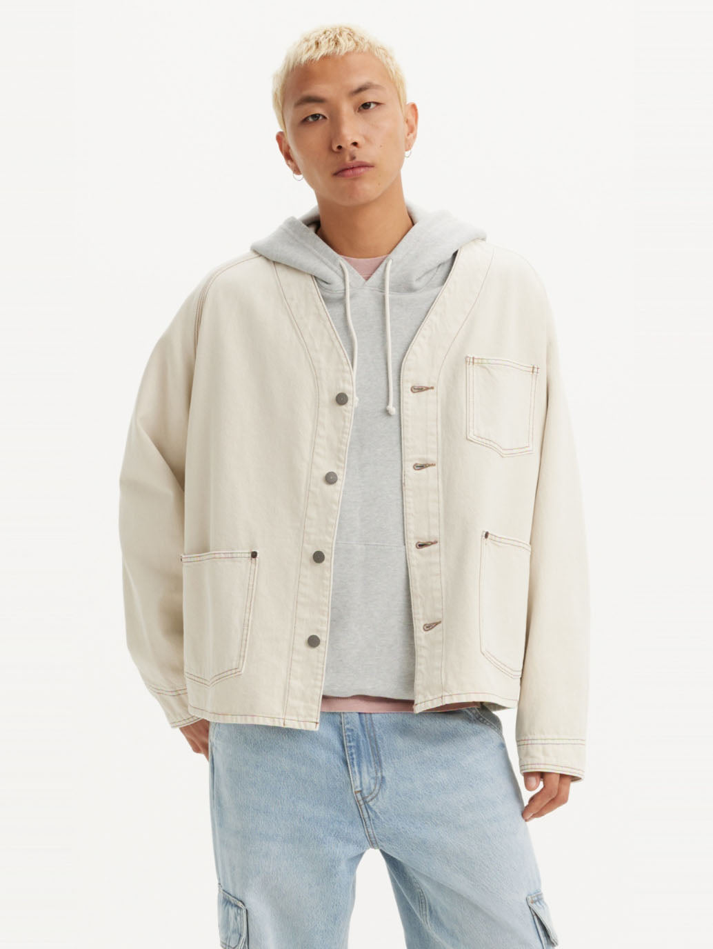 This jacket from Levi's is designed for comfort and warmth in case of that little nip in the air. Made from cotton in a relaxed fit, this jacket is as flattering as they come. Its cream color and solid pattern adds a dash of personality to your look. This jacket proves to be a simple piece of outerwear to achieve that fashionable and cozy look.