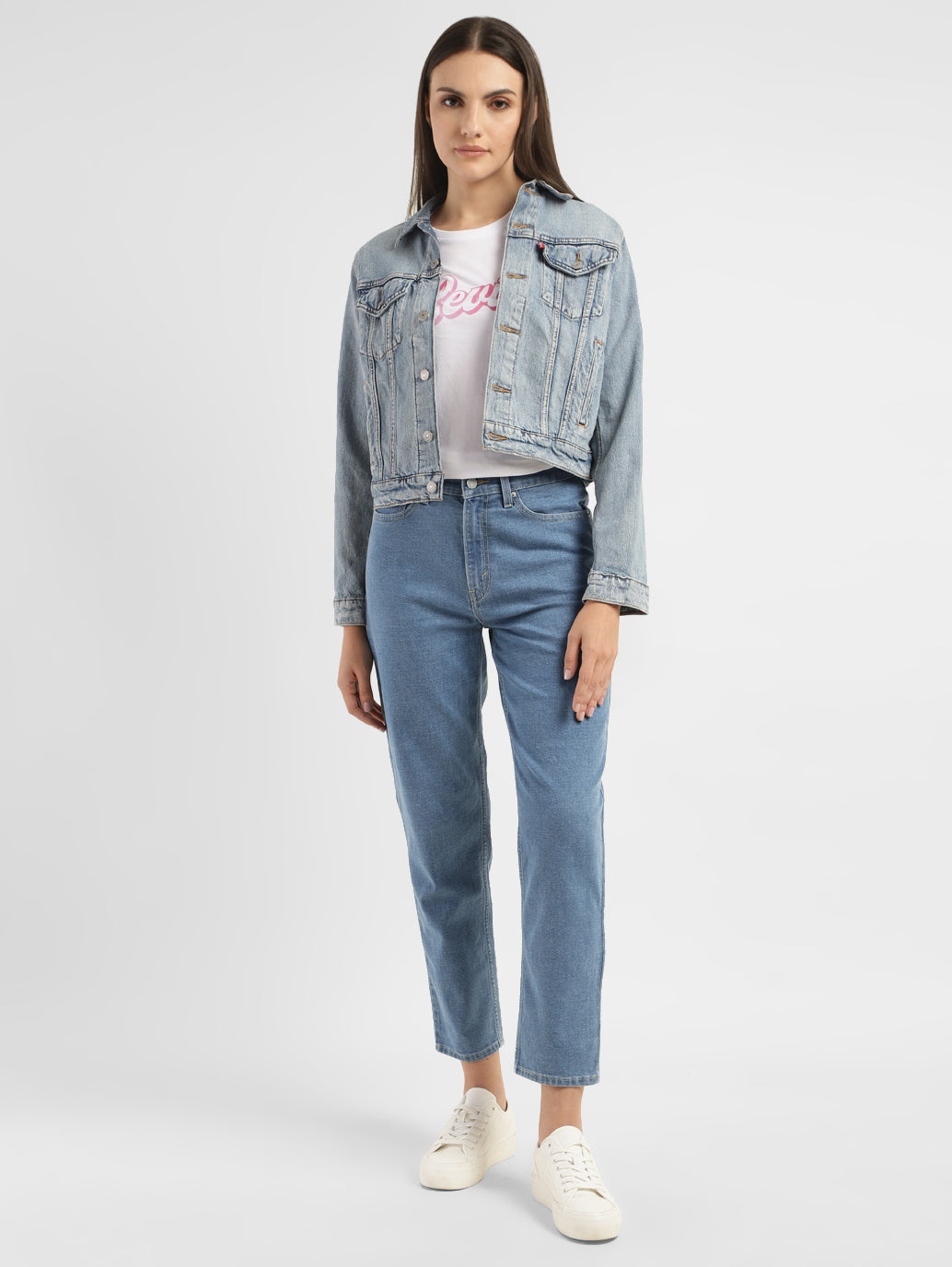 With a figure-flattering mid rise silhouette and plenty of adaptable pockets, Levi's improves denim style! These mom blue Jeans feature button&zip at the front and a flattering waistband. The straight fit style is just right for going out or staying in!