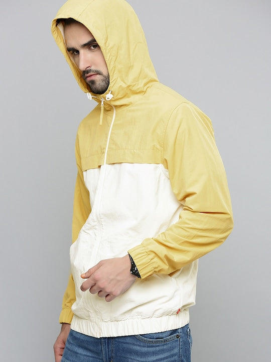 Make a cool fashion statement by donning the trendy and versatile Levi's® Men's Slim Fit Sporty Jacket. This yellow jacket features a understated colorblock pattern. This full sleeves jacket is made from cotton material and boasts a slim fit.