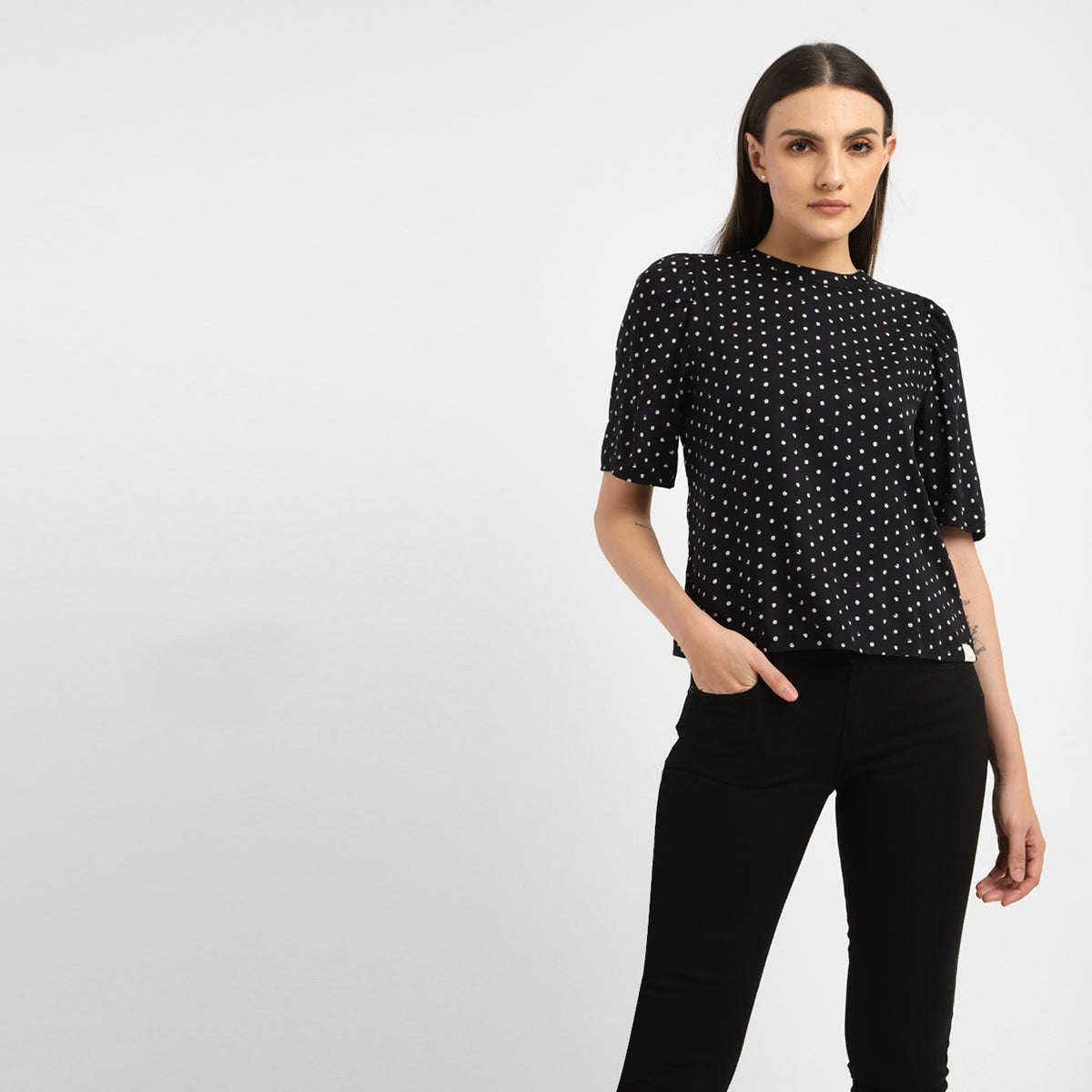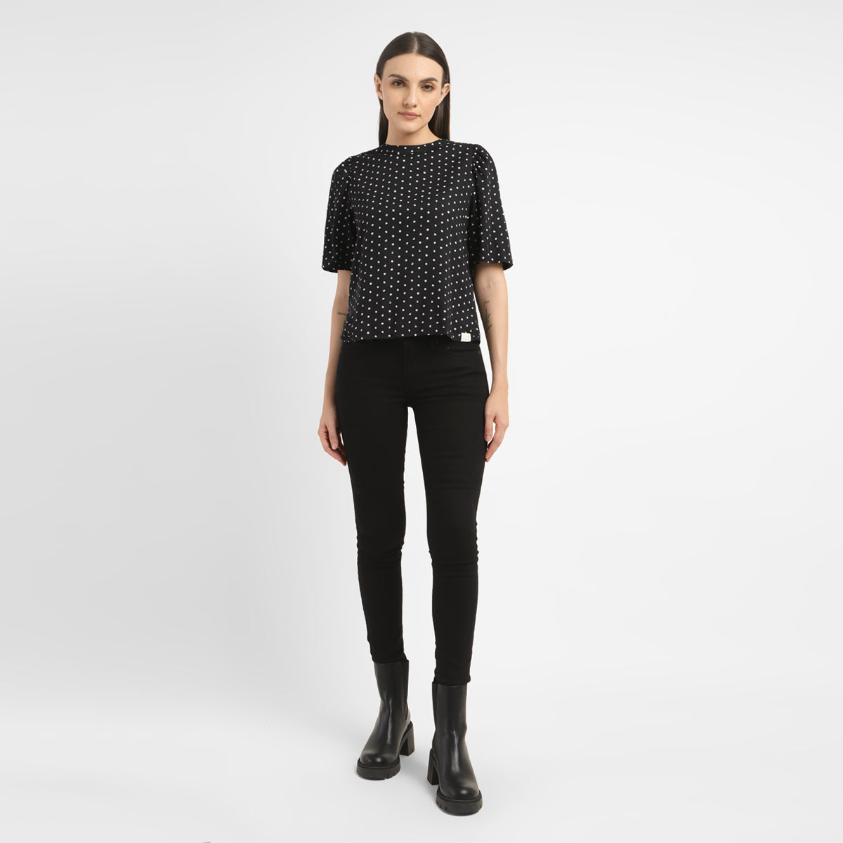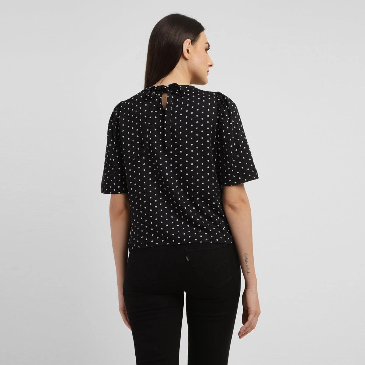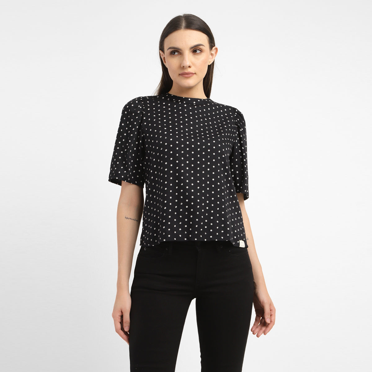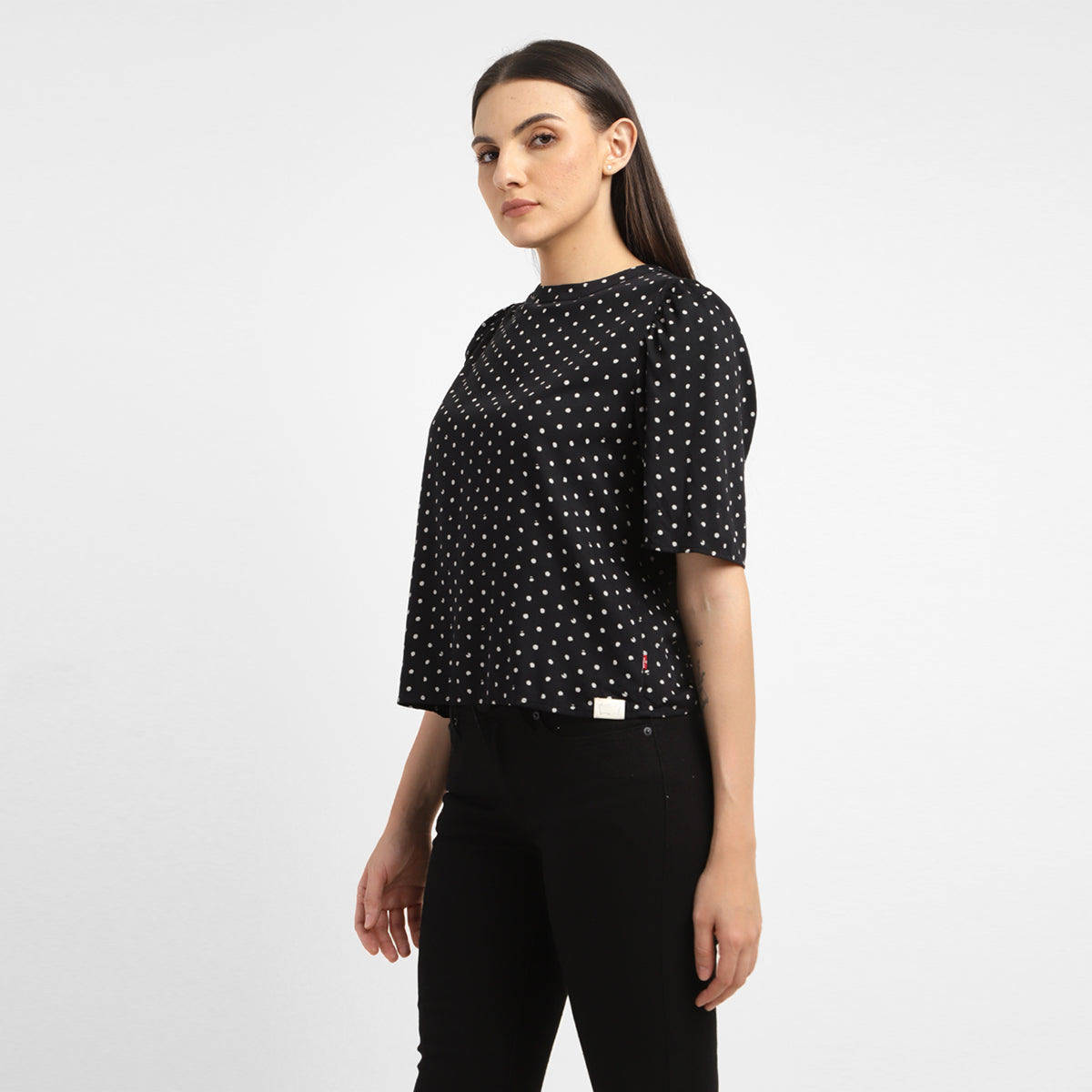 This black top from Levi's is endlessly versatile and easy to wear. It features round neck which is easy to layer and style with beautiful polka dot pattern making it the perfect casual staple. With a regular fit, this cotton top looks great either way, layered or not.