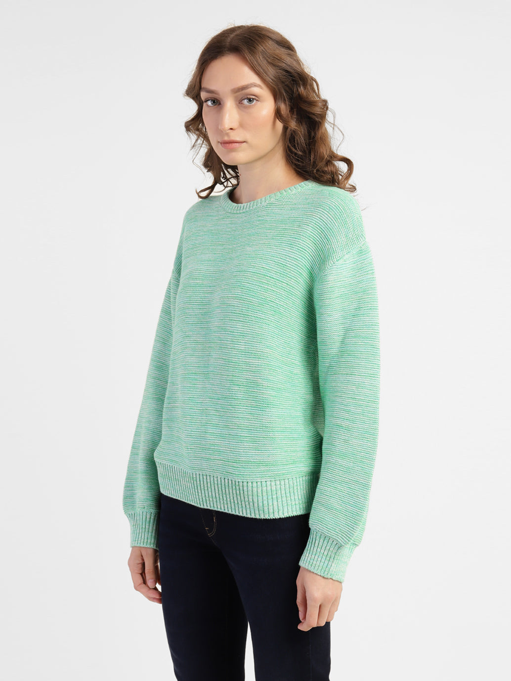 Flaunt your love for athleisure wear by opting for the smart Levi's Women's Crew Neck Sweatshirt. Designed in a green hue with a lovely knit pattern, this sweatshirt is sure to stand apart. To lend a comfy fit, this sweatshirt is made from cotton and features crew neck and full sleeves.