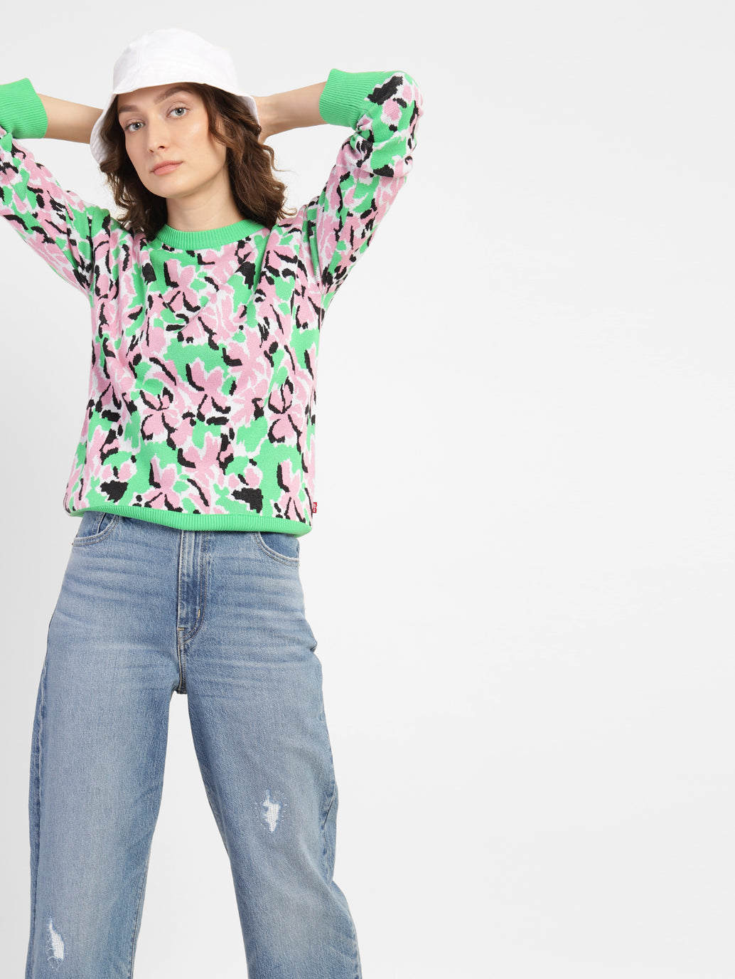 Flaunt your sporty side by donning the smart and stylish Levi's Women's Relaxed Fit Sweatshirt. This sweatshirt is designed with a printed pattern in a lovely multi colour. This sweatshirt is tailored from soft cotton, and features a crew neck and full sleeves.