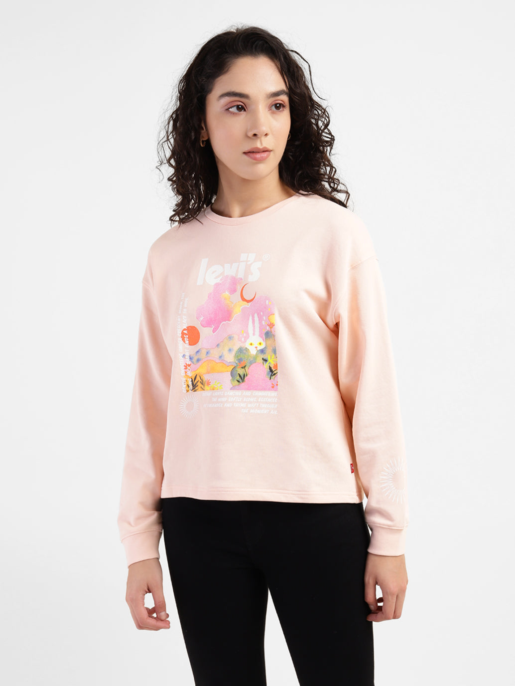 Revamp your casual closet by opting for the chic and versatile Levi's® Women's Styled Sweatshirt. It boasts a graphic pattern and is designed in a lovely pink shade. This sweatshirt features crew neck, full sleeves, and is crafted from soft cotton material.