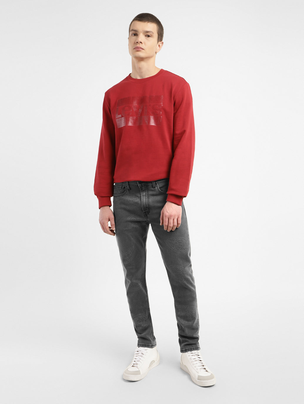 Everything you like about 512 Slim, but updated with a narrow fit through the thigh and tapered leg for the fashion-forward guy. It's perfect for the modern look right now. This paisly printed pair has just the right amount of stretch for all-day comfort and comes in a grey hue with the classic 5 pocket and cotton material. Style it with our classic shirts and a pair of sneakers to complete your casual look. 1. Sits below the waist 2. Narrow leg for a more tailored look 3. The perfect balance of slim and tapered