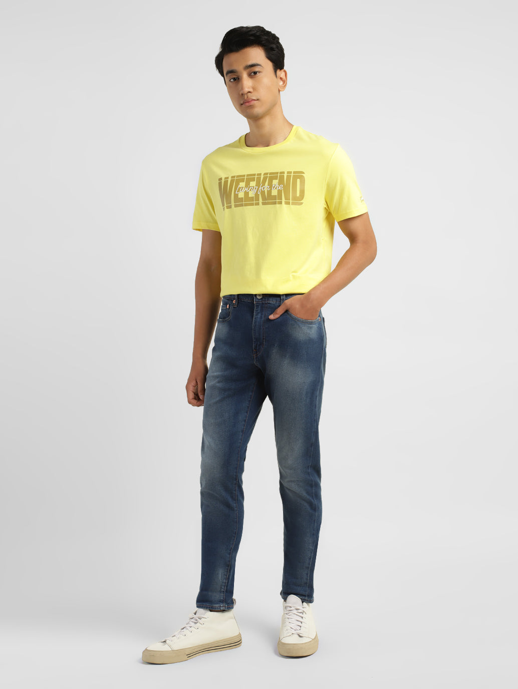 Everything you like about 512 Slim, but updated with a narrow fit through the thigh and tapered leg for the fashion-forward guy. It's perfect for the modern look right now. This pair has just the right amount of stretch for all-day comfort and comes in a mid indigo hue with the classic 5 pocket and a cotton material. Style it with our classic shirts and a pair of sneakers to complete your casual look.