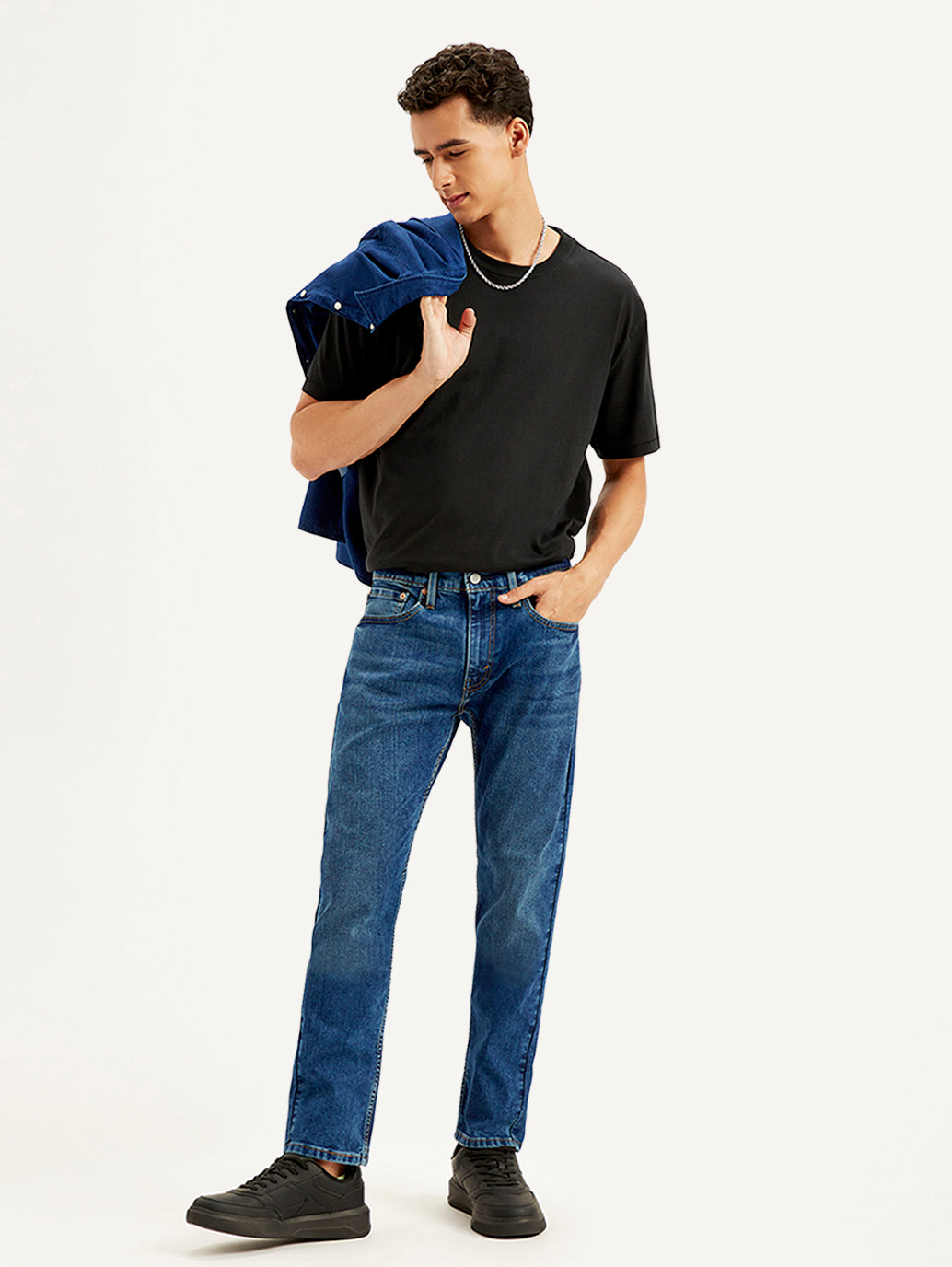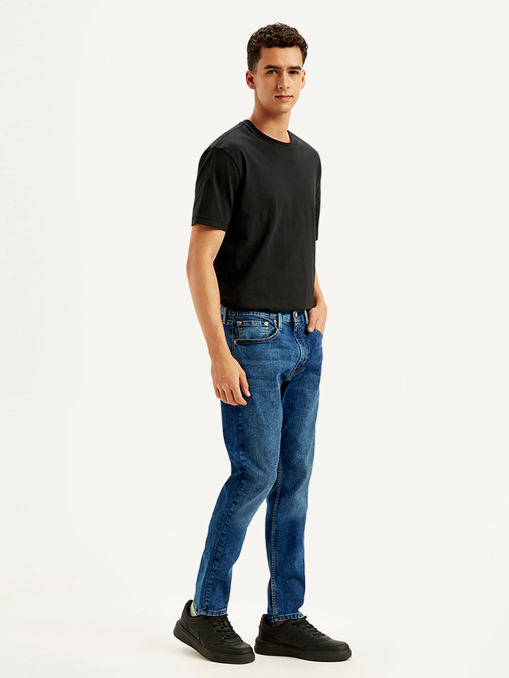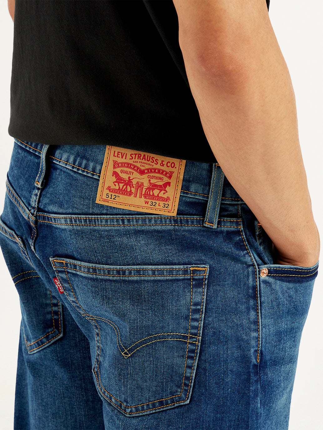 Everything you like about 512 Slim, but updated with a narrow fit through the thigh and tapered leg for the fashion-forward guy. It's perfect for the modern look right now. This pair has just the right amount of stretch for all-day comfort and comes in a blue hue with the classic 5 pocket and cotton material. Style it with our classic shirts and a pair of sneakers to complete your casual look.