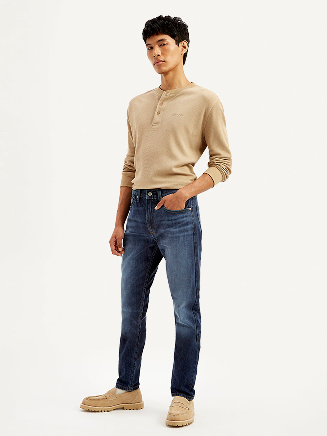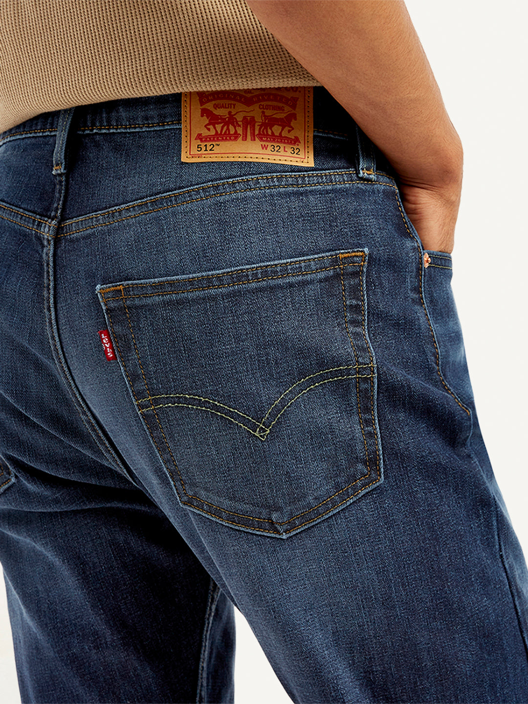Everything you like about 512 Slim, but updated with a narrow fit through the thigh and tapered leg for the fashion-forward guy. It's perfect for the modern look right now. This pair has just the right amount of stretch for all-day comfort and comes in a blue hue with the classic 5 pocket and a cotton material. Style it with our classic shirts and a pair of sneakers to complete your casual look.