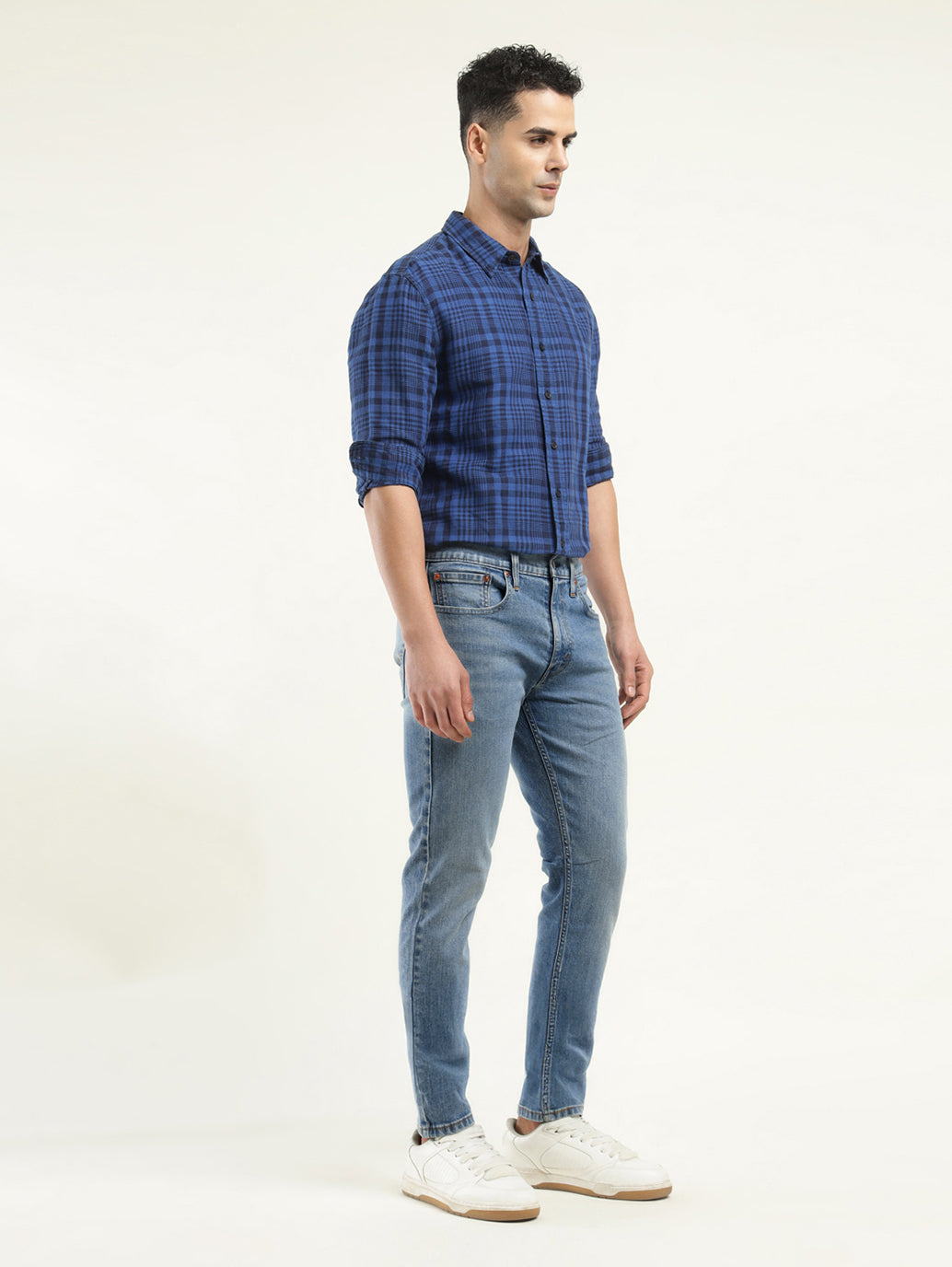 Everything you like about 512 Slim, but updated with a narrow fit through the thigh and tapered leg for the fashion-forward guy. It's perfect for the modern look right now. This pair has just the right amount of stretch for all-day comfort and comes in a blue hue with the classic 5 pocket and cotton material. Style it with our classic shirts and a pair of sneakers to complete your casual look.