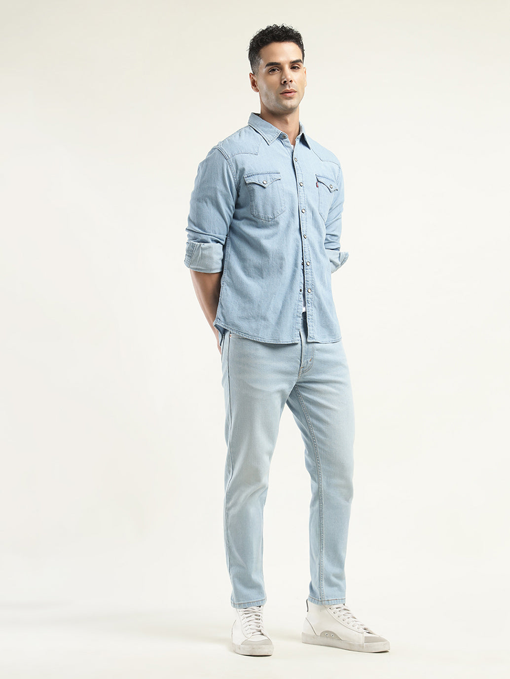 Everything you like about 512 Slim, but updated with a narrow fit through the thigh and tapered leg for the fashion-forward guy. It's perfect for the modern look right now. This pair has just the right amount of stretch for all-day comfort and comes in a blue hue with the classic 5 pocket and cotton material. Style it with our classic shirts and a pair of sneakers to complete your casual look.