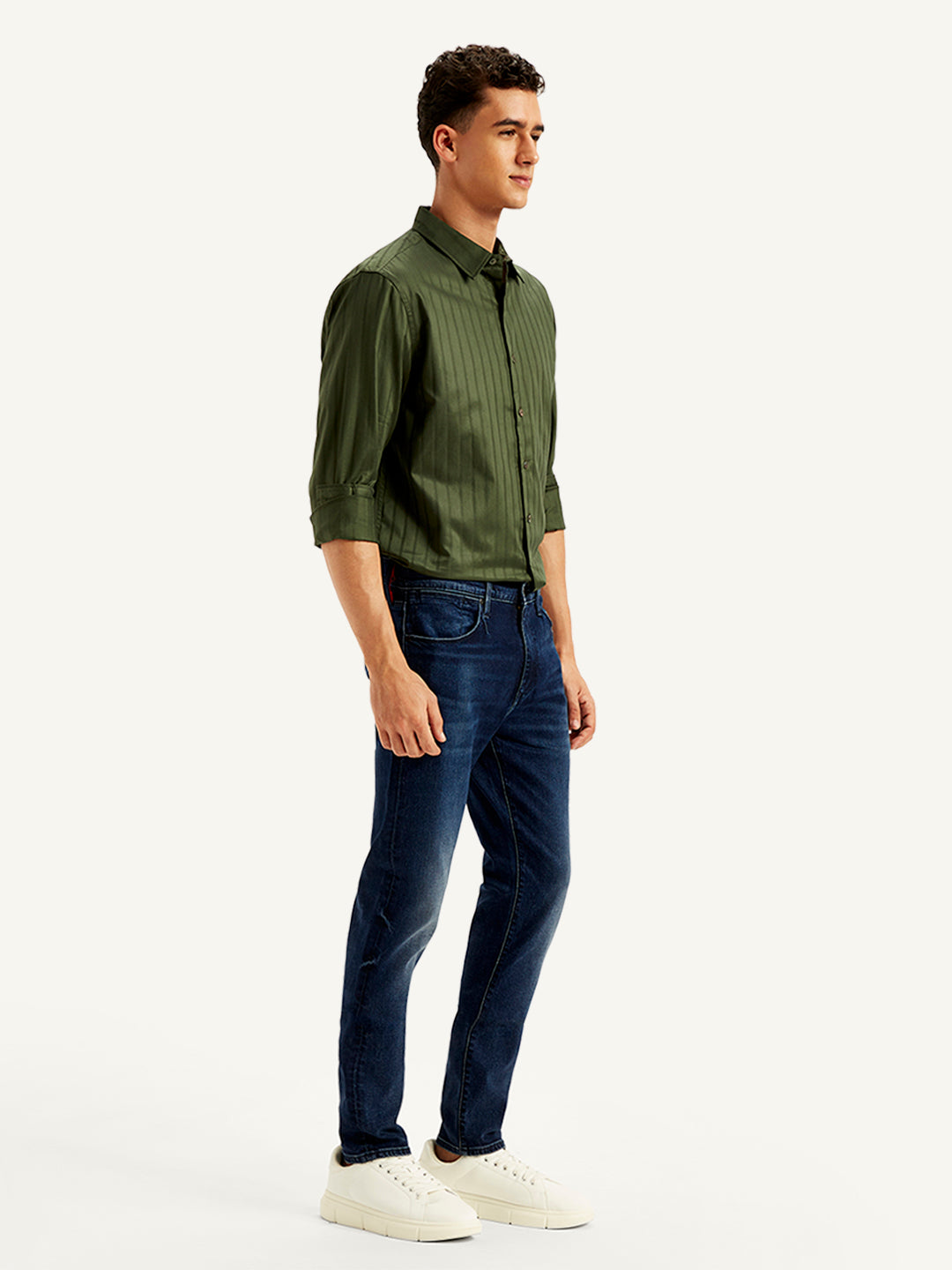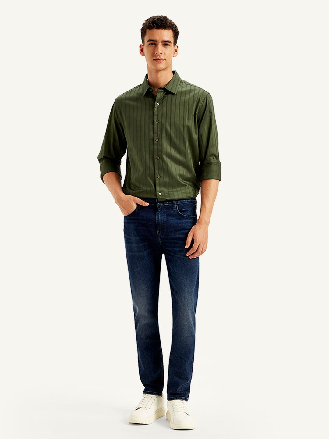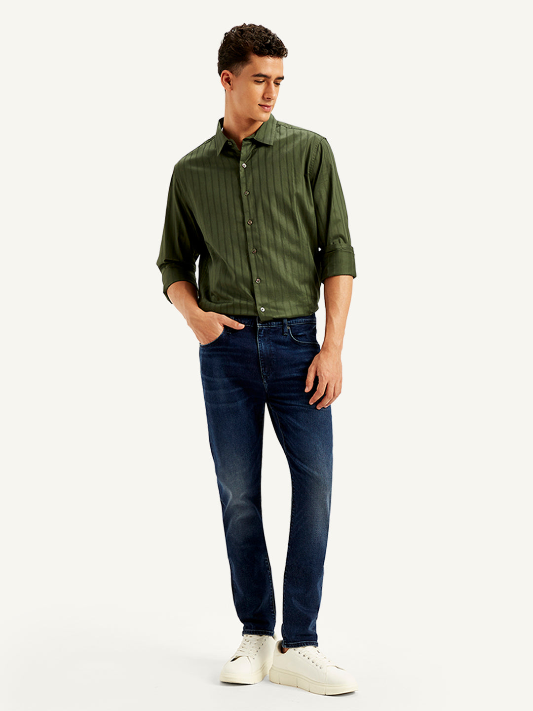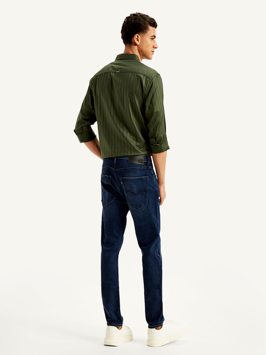 Everything you like about 512 Slim, but updated with a narrow fit through the thigh and tapered leg for the fashion-forward guy. It's perfect for the modern look right now. This pair has just the right amount of stretch for all-day comfort and comes in a navy hue with the classic 5 pocket and a cotton material. Style it with our classic shirts and a pair of sneakers to complete your casual look.