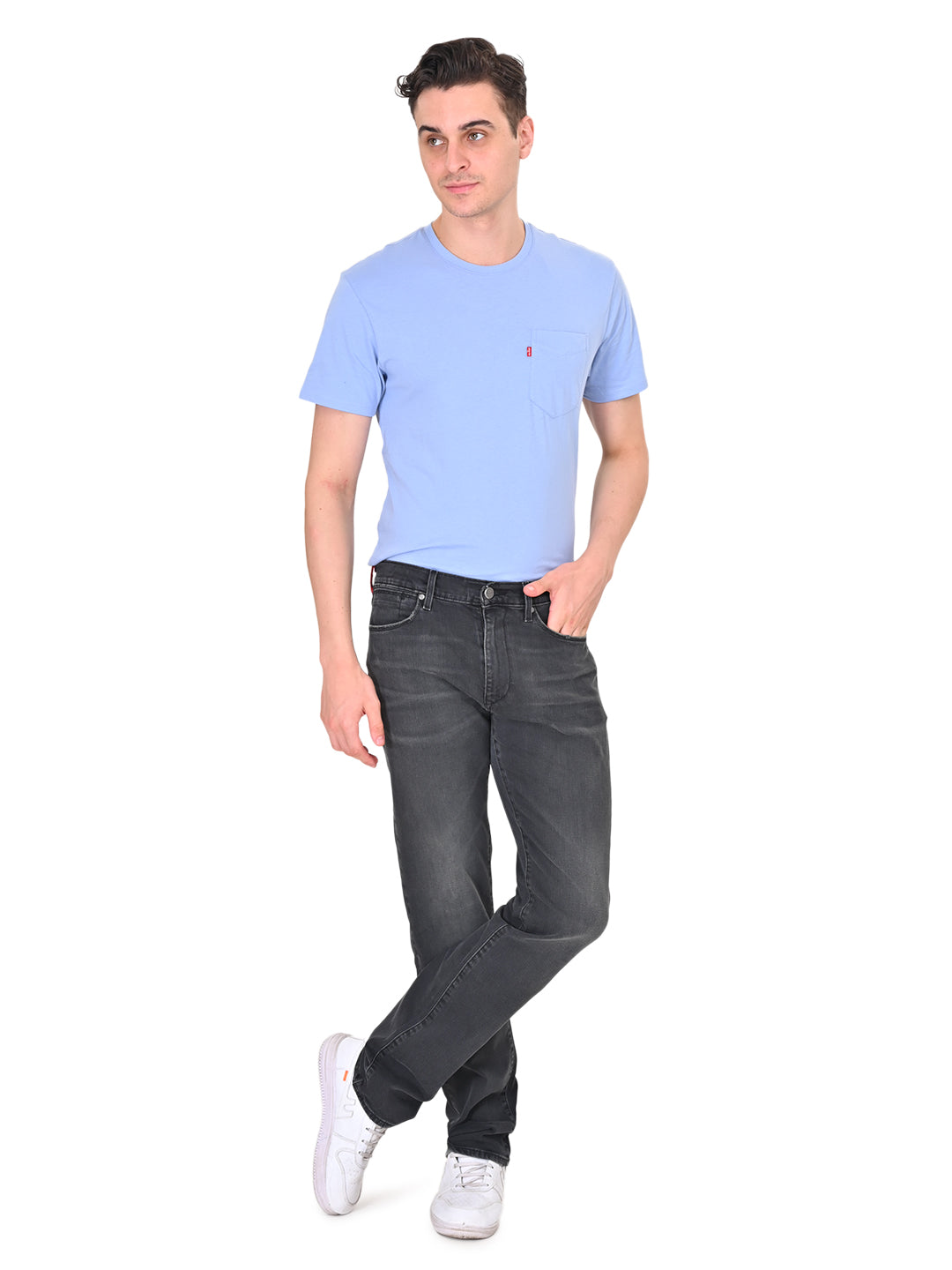 Iconic style has met comfort. A fit that's not too baggy/relaxed and not too slim. The Levis 513 straight fit is versatile and gives a streamlined silhouette. Wear them with a t-shirt or buttoned shirt, either would work. These grey jeans with a whiskered effect are made of cotton and will stay durable providing exceptional ease of movement and wearing comfort.