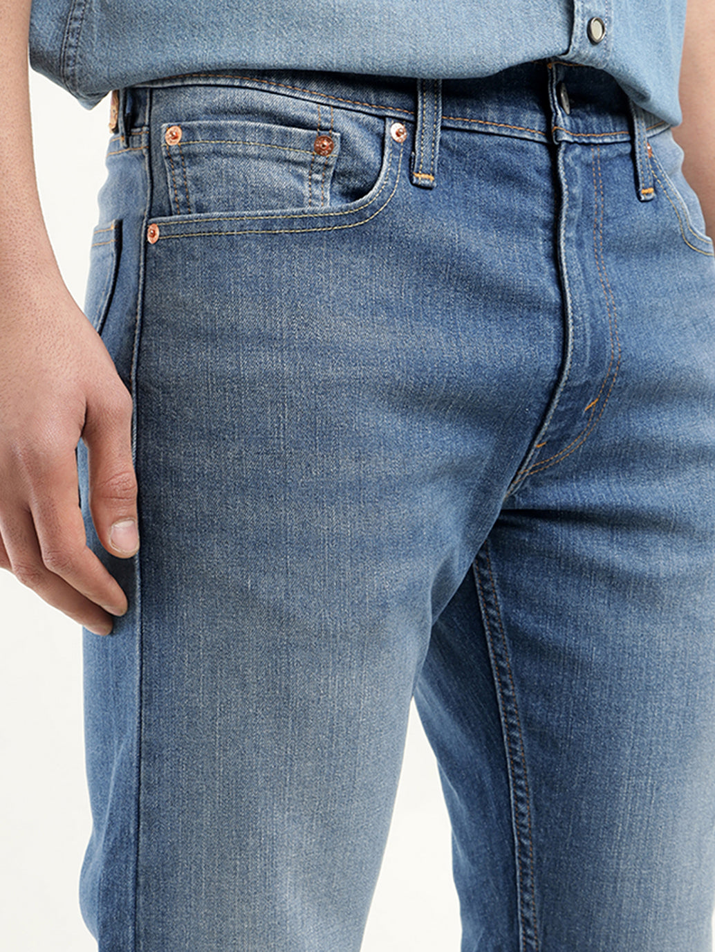 Iconic Style has met comfort. A fit that's not too baggy/relaxed and not too slim. The Levis 513 Straight fit is versatile and gives a streamlined silhouette. Wear them with a t-shirt or buttoned shirt, either would work. These blue jeans with a dark shade are made of cotton and will stay durable providing exceptional ease of movement and wearing comfort.