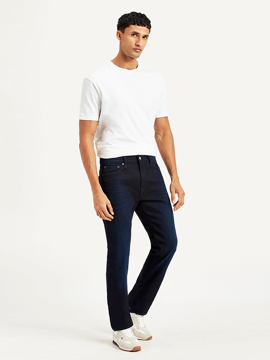 Iconic Style has met comfort. A fit that's not too baggy/relaxed and not too slim. The Levis 513 Straight fit is versatile and gives a streamlined silhouette. Wear them with a t-shirt or buttoned shirt, either would work. These navy jeans with a dark shade are made of cotton and will stay durable providing exceptional ease of movement and wearing comfort.