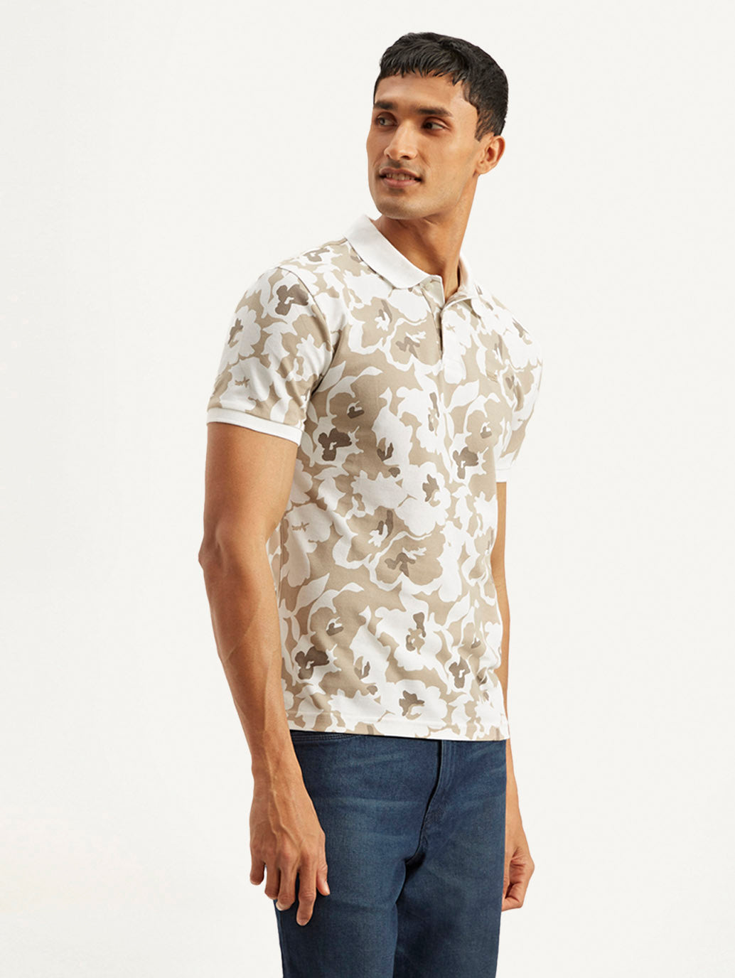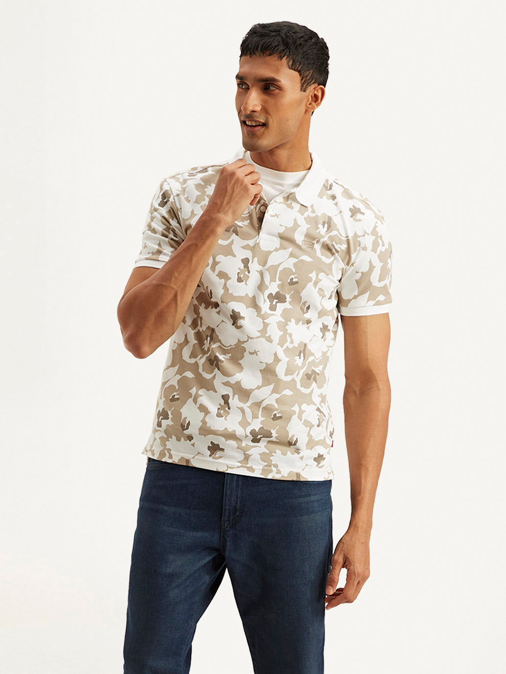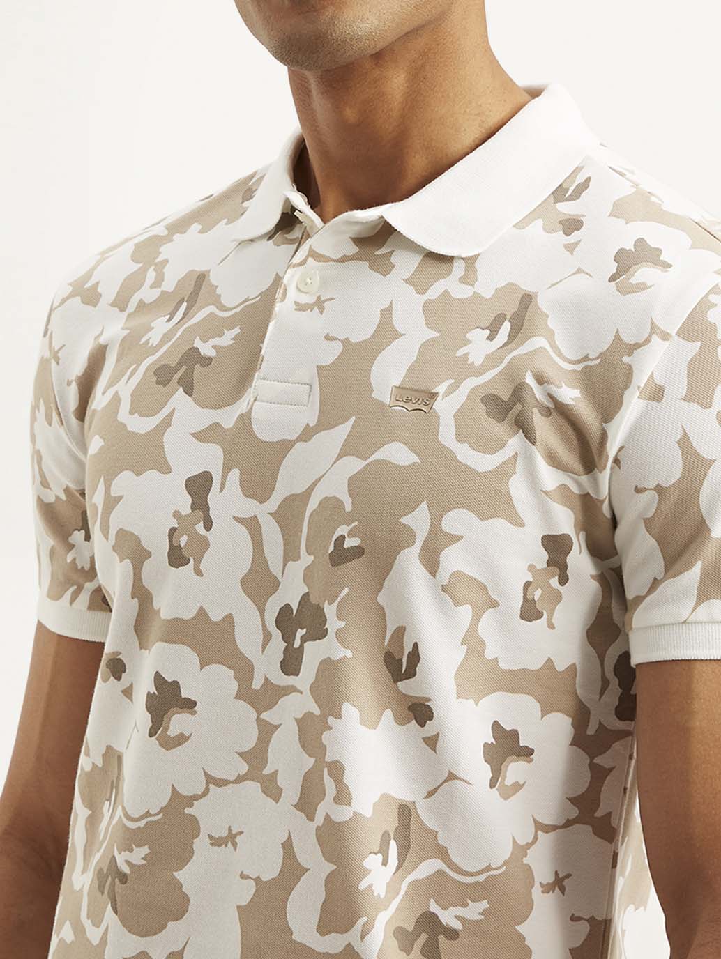 - Features a polo collar and short sleeves