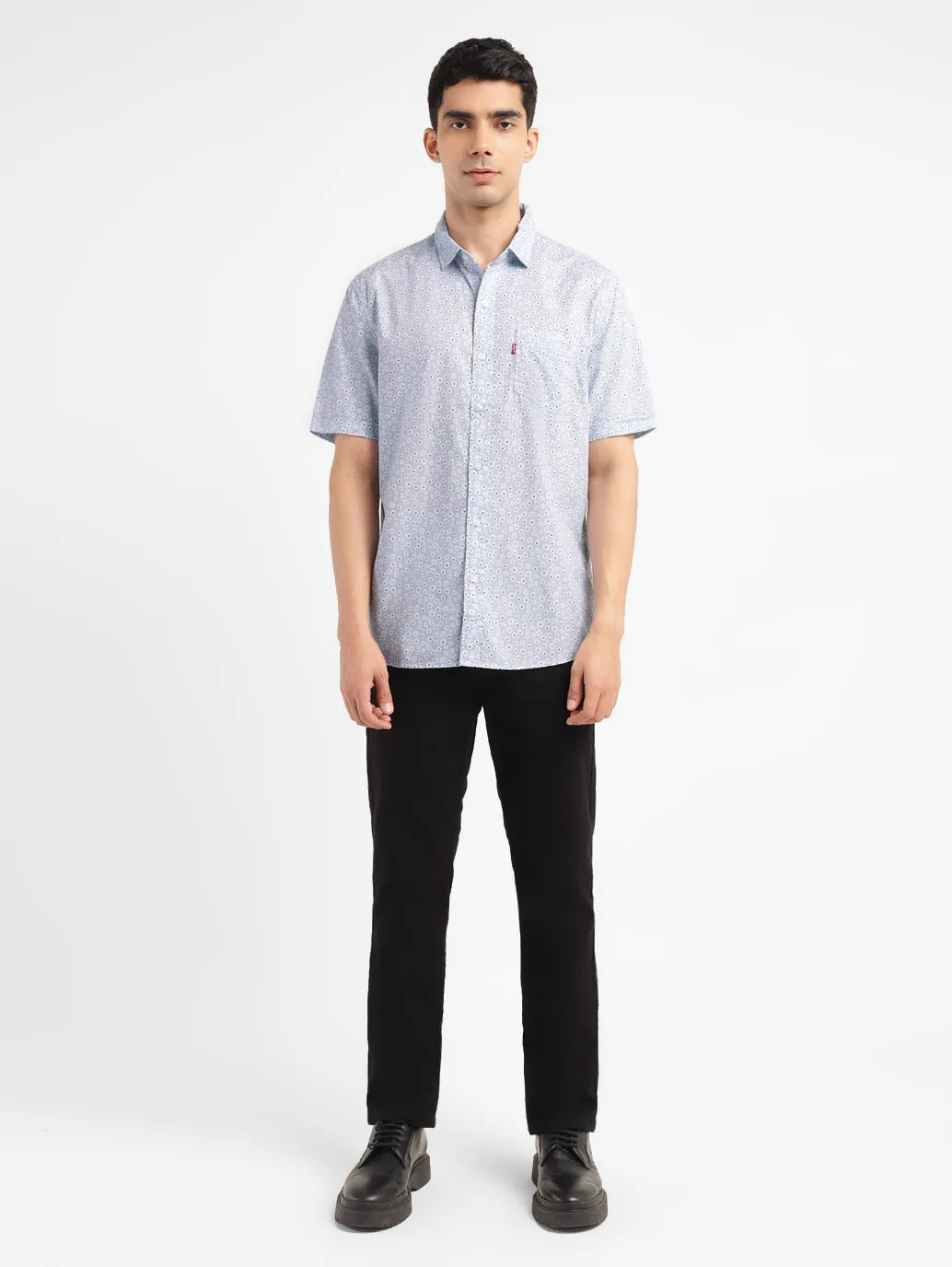 Sometimes, only a classic will do. This blue knitted pattern shirt from Levi's smartens up any laidback-chinos and sneakers combo. The full sleeves and spread collar can always be counted on to add a touch of casual class.