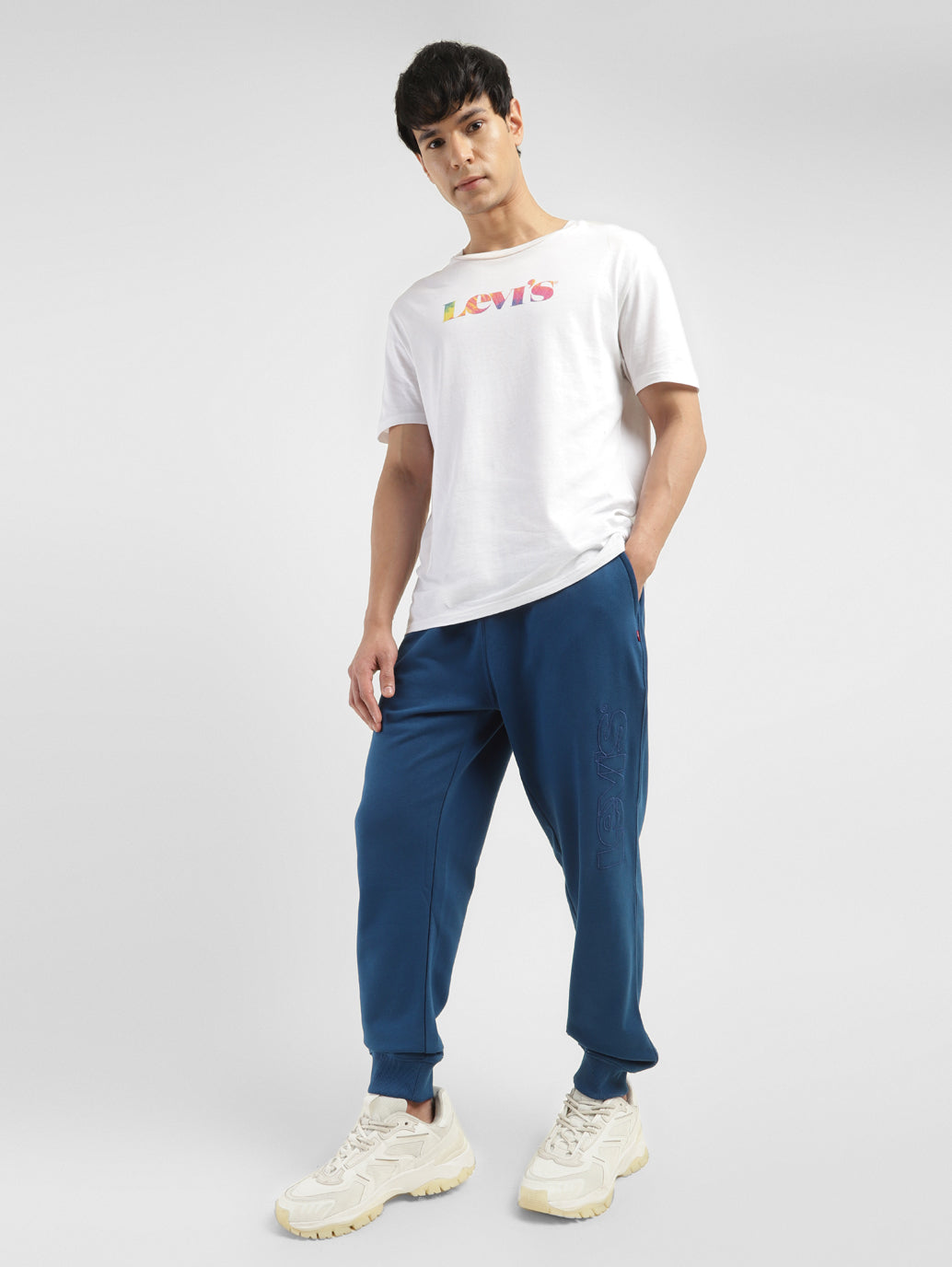 Levi's joggers for men are the perfect partner for any casual day out. It features a brand logo pattern and sports a ankle. A great addition to your wardrobe, pair these mid rise waist joggers with a bomber jacket and white trainers to complete your go-to look.