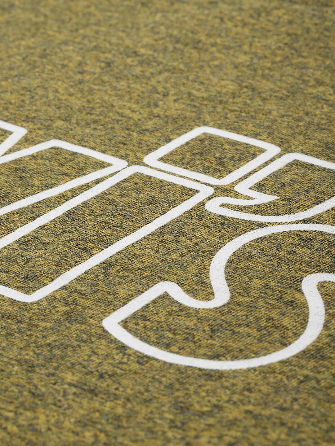 - Features a brand logo pattern and tan yellow color