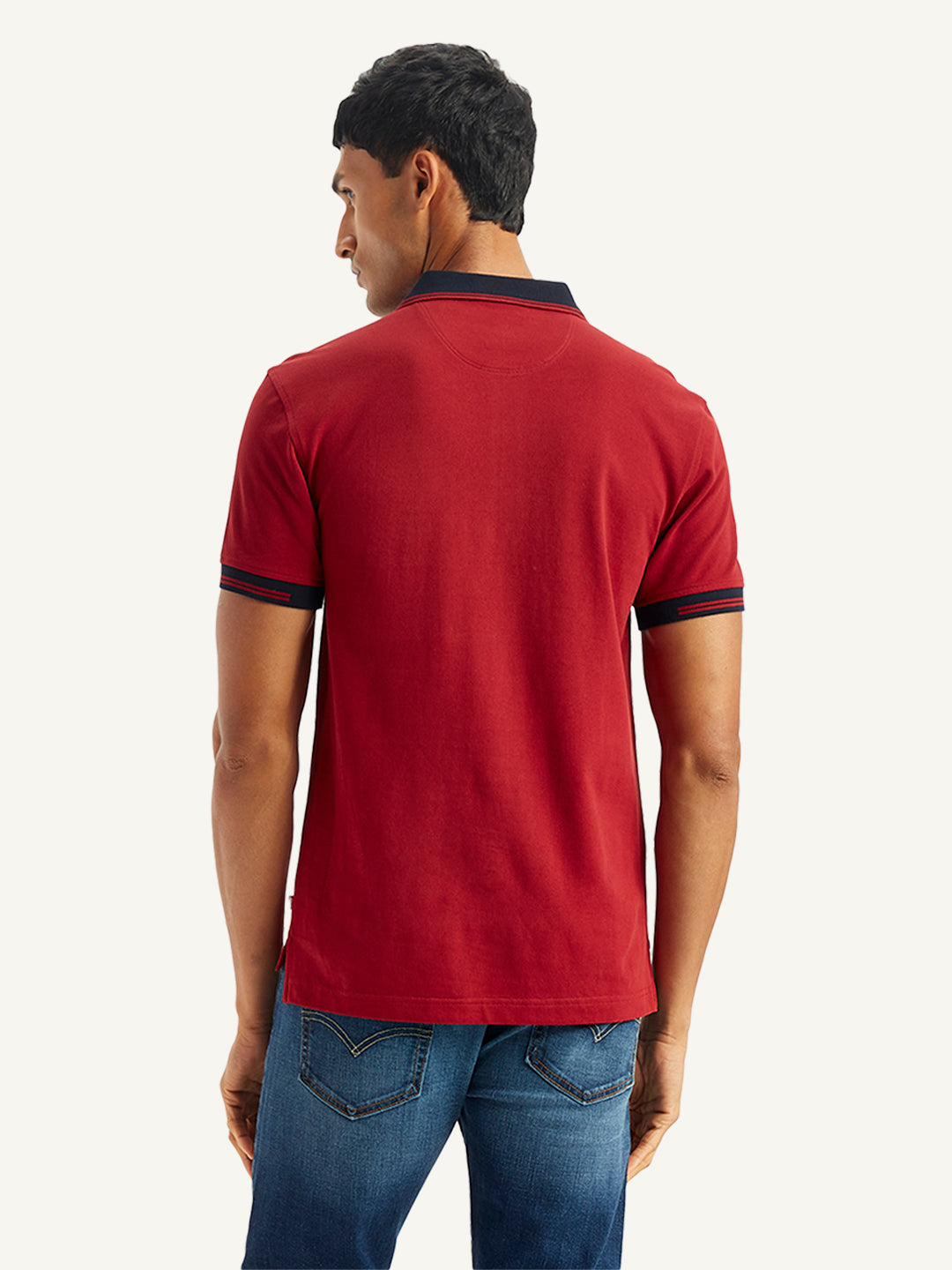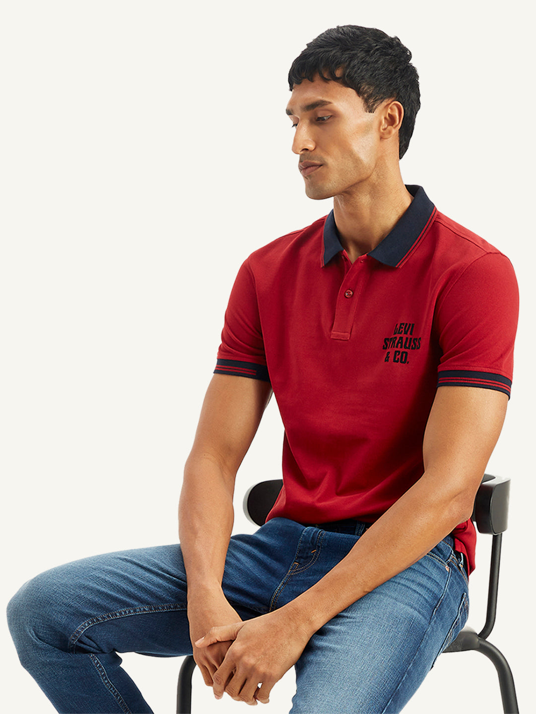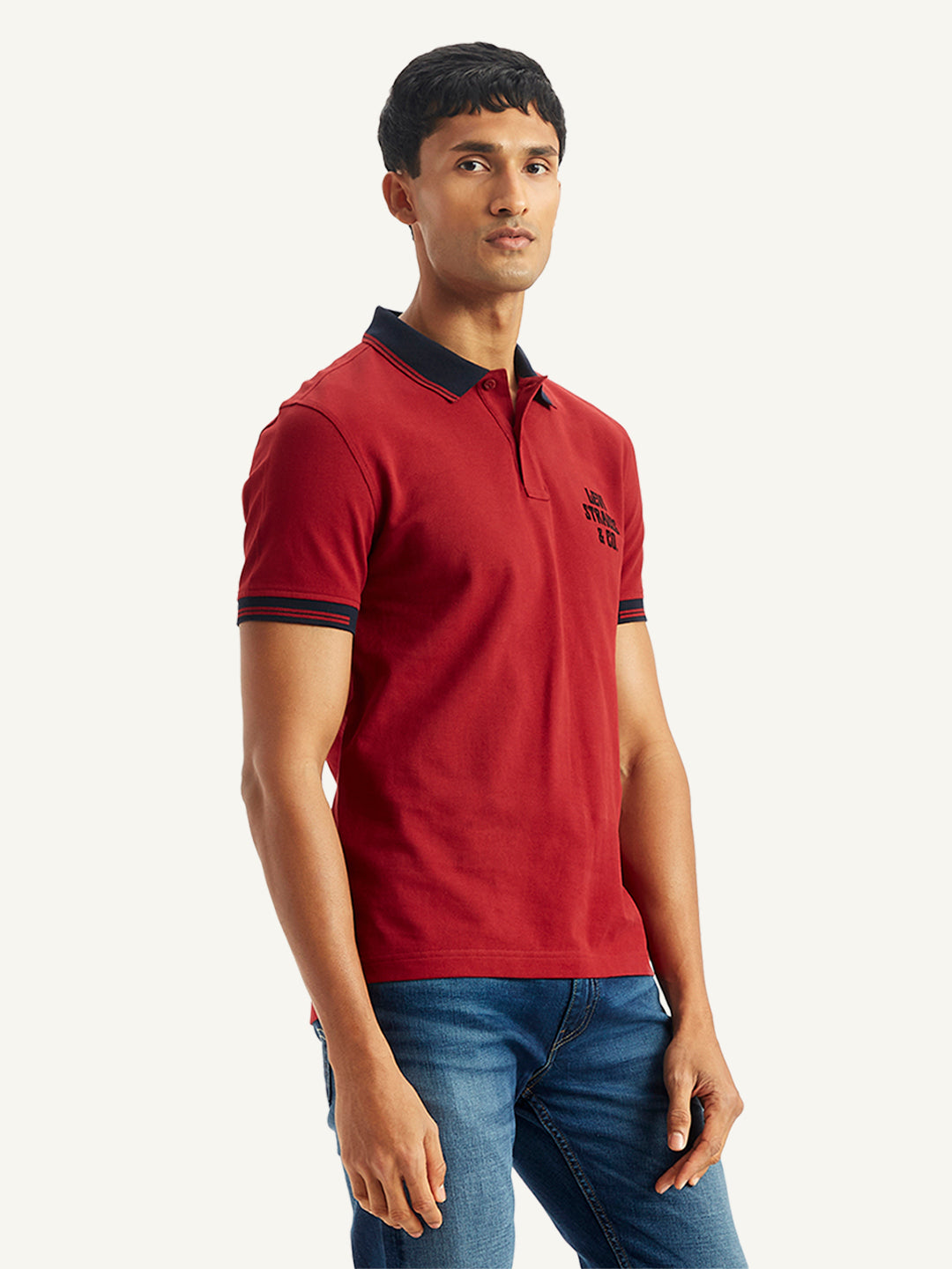Made from good quality cotton, this easygoing Levis red t-shirt is perfect to add to your casual collection. Features a polo collar and a brand logo pattern.