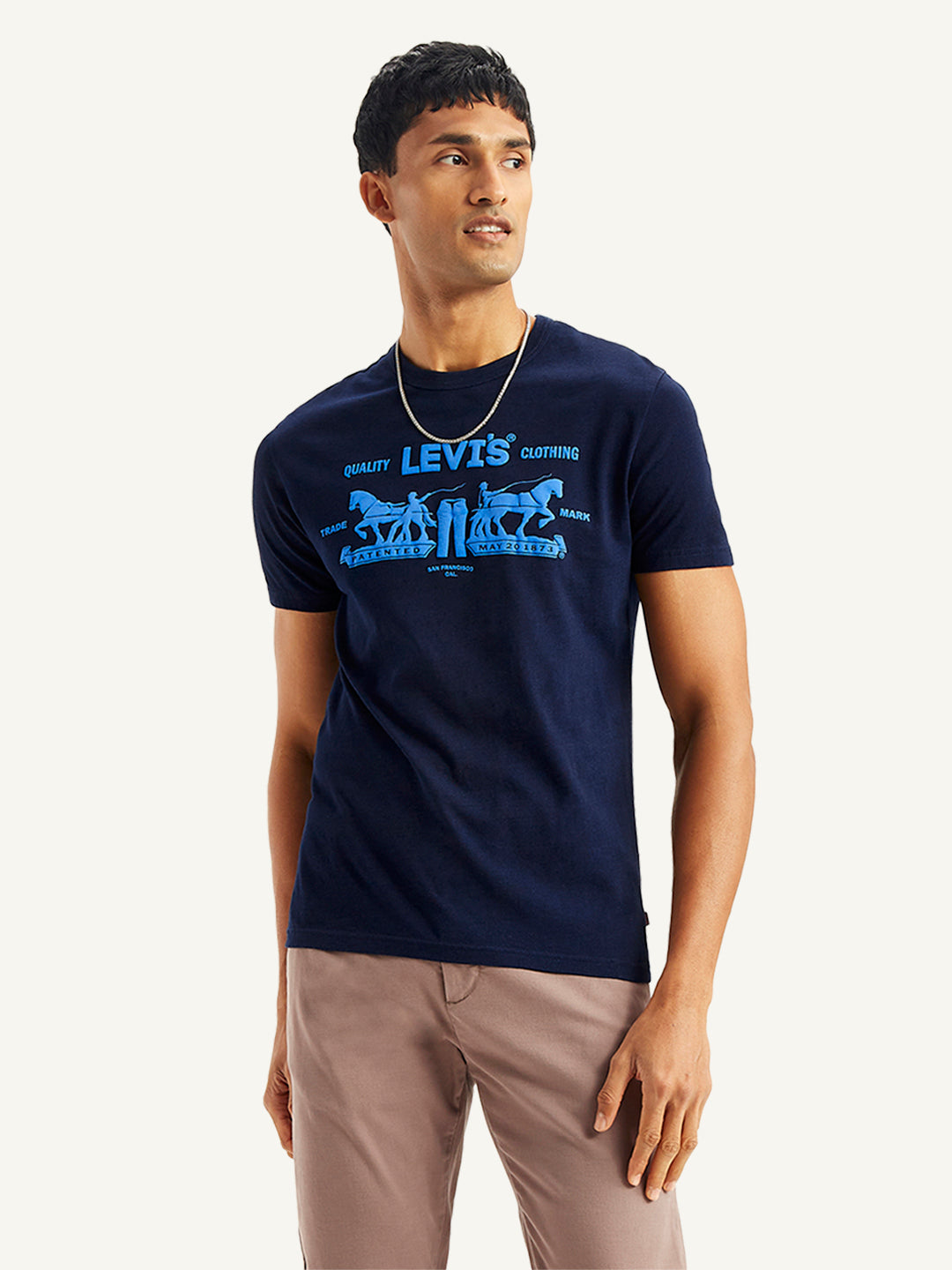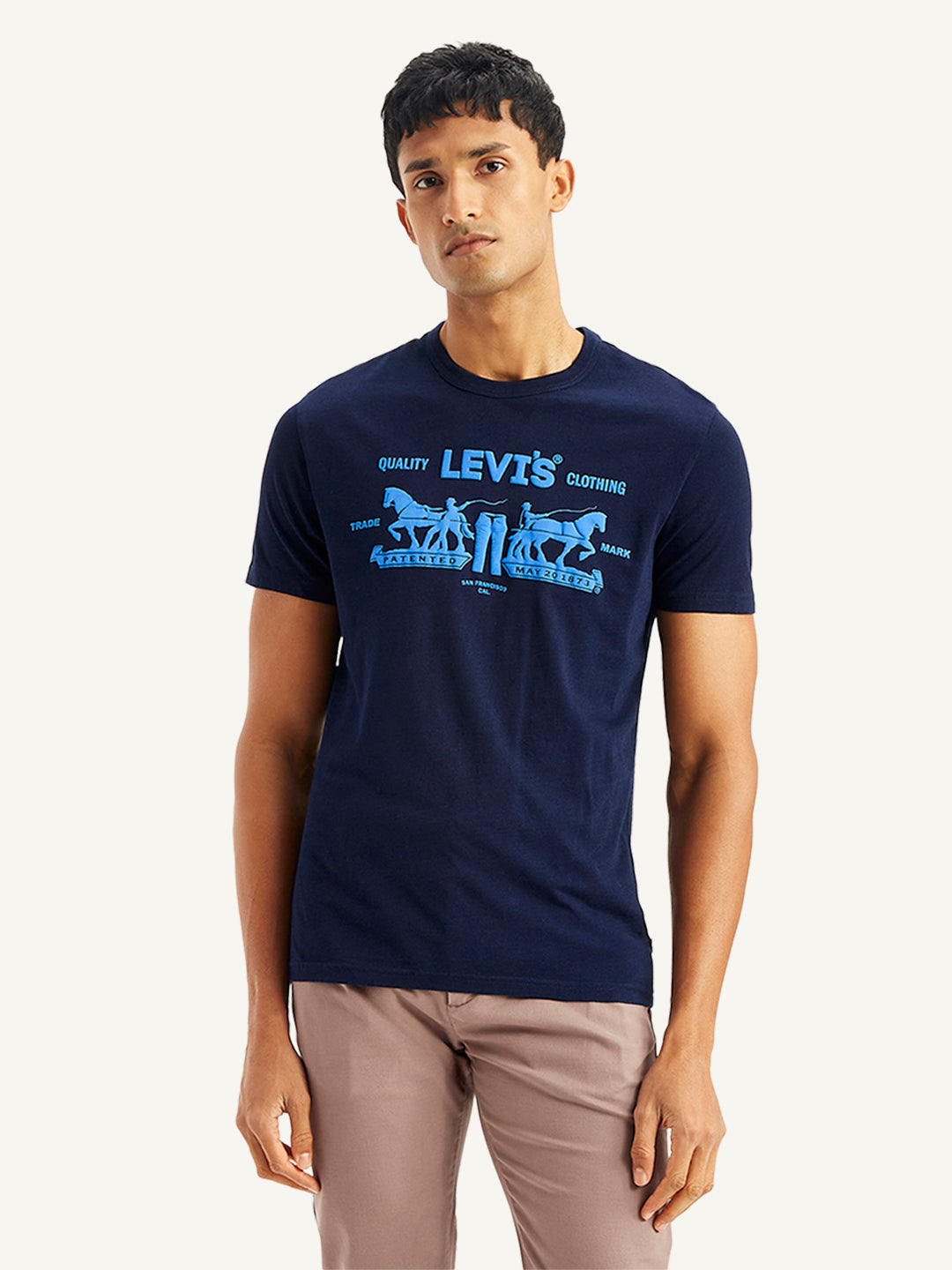 Switch up your everyday wardrobe with this trending t-shirt from Levi's. Ideal to wear for all seasons, this versatile t-shirt features a crew neck and half sleeves. Comfortable essential with a brand logo pattern.