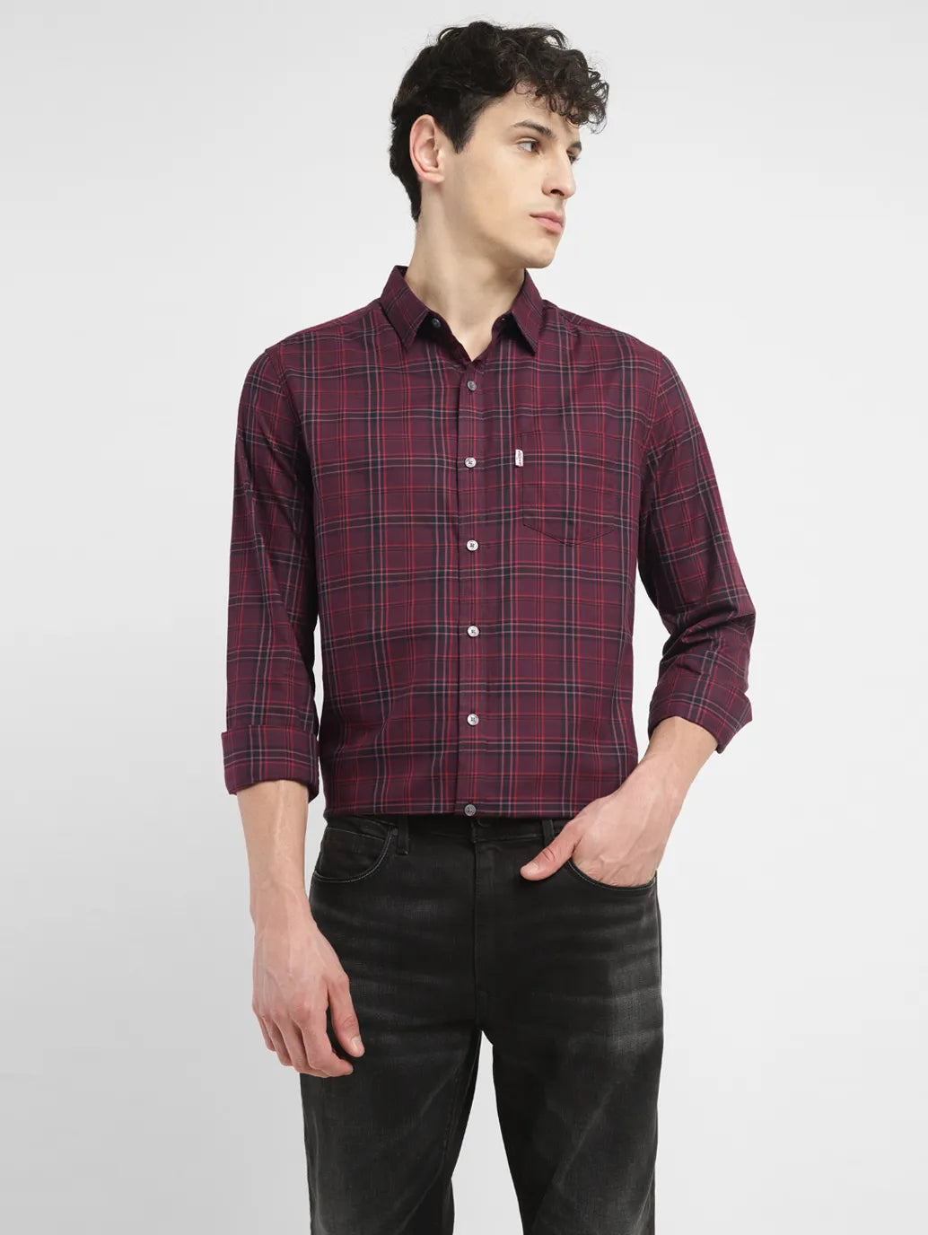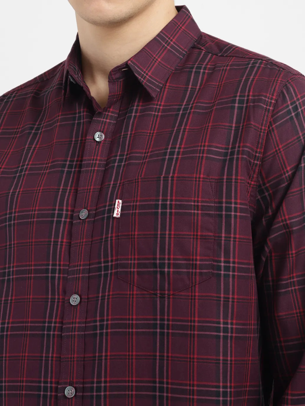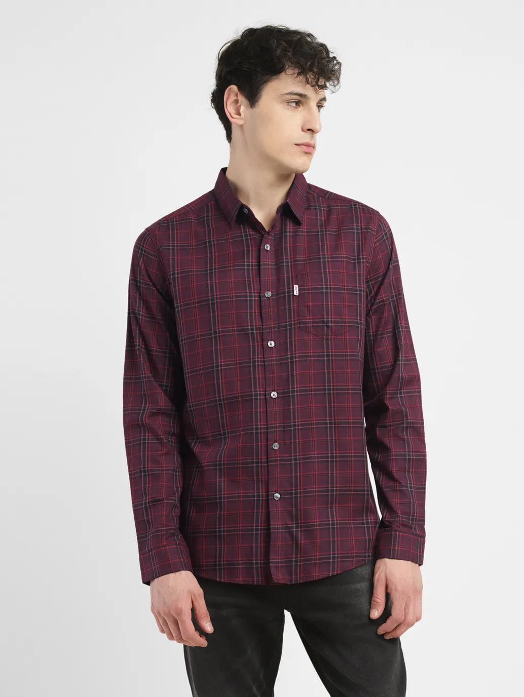 Levi's purple button-down shirt in a checked print is a must-have item for the modern man's closet. This classic spread collar and full sleeves make it perfect for pairing with denim or chinos alike. 1. Tailored in premium pure cotton 2. This shirt is designed for a slim fit 3. Features a checked in purple color