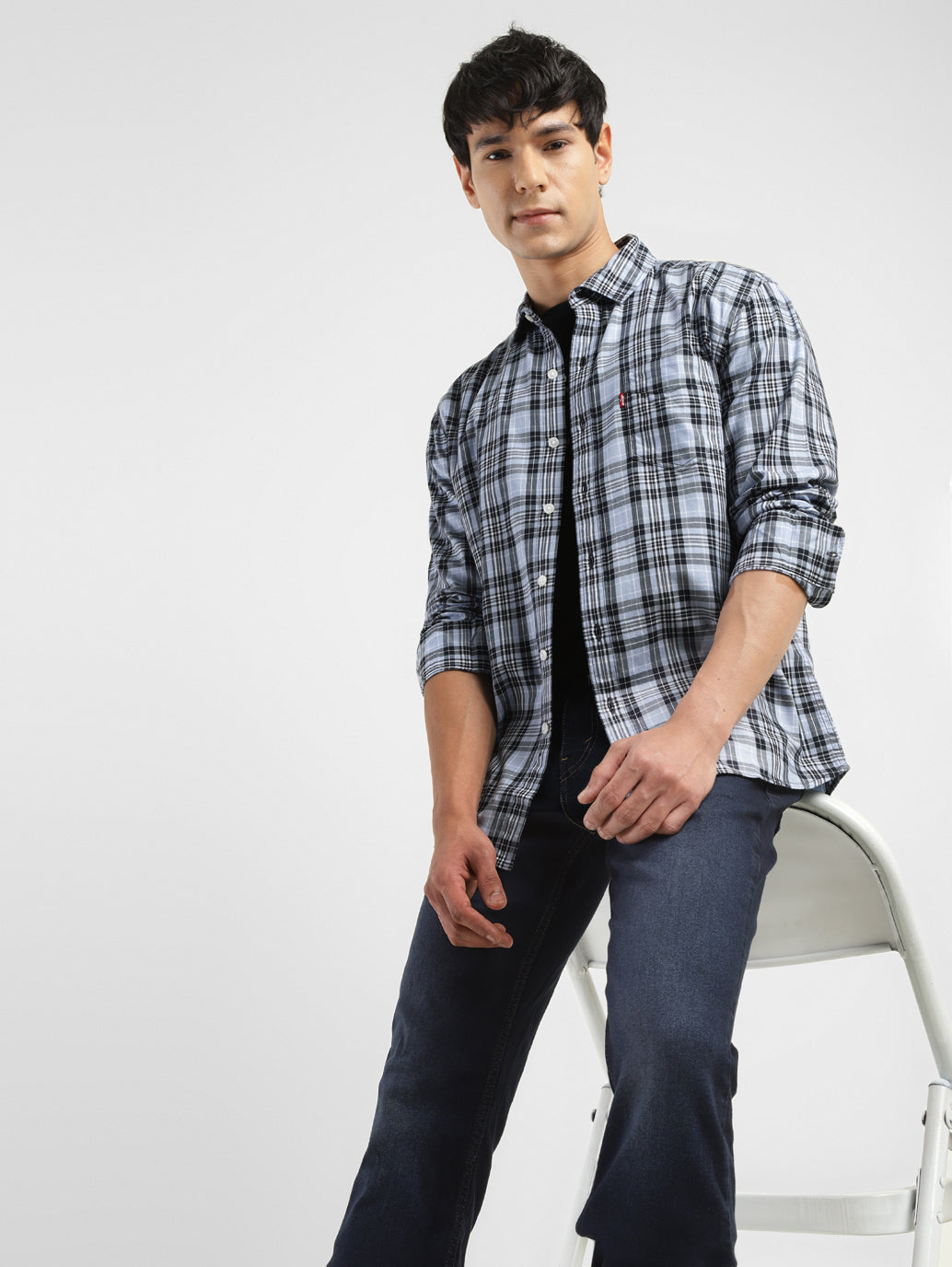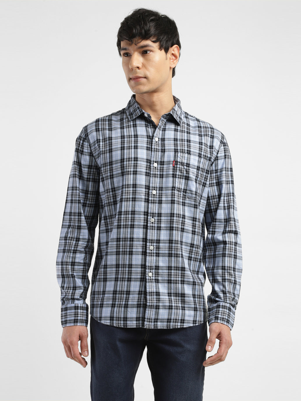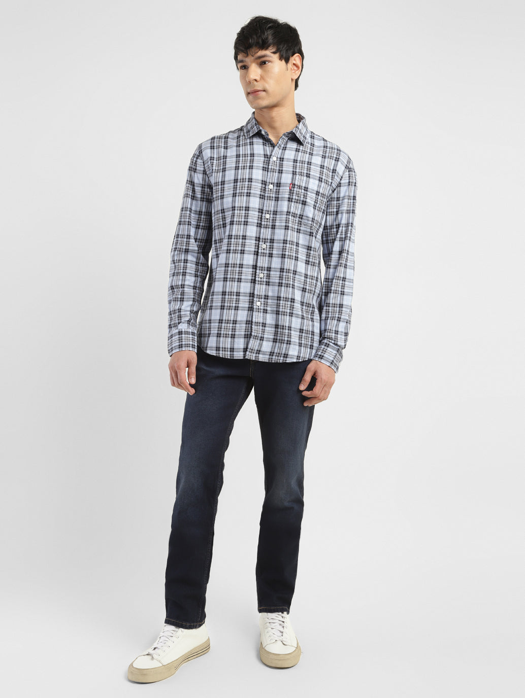 Sometimes, only a classic will do. This navy checked pattern shirt from Levi's smartens up any laidback-chinos and sneakers combo. The full sleeves and spread collar can always be counted on to add a touch of casual class.