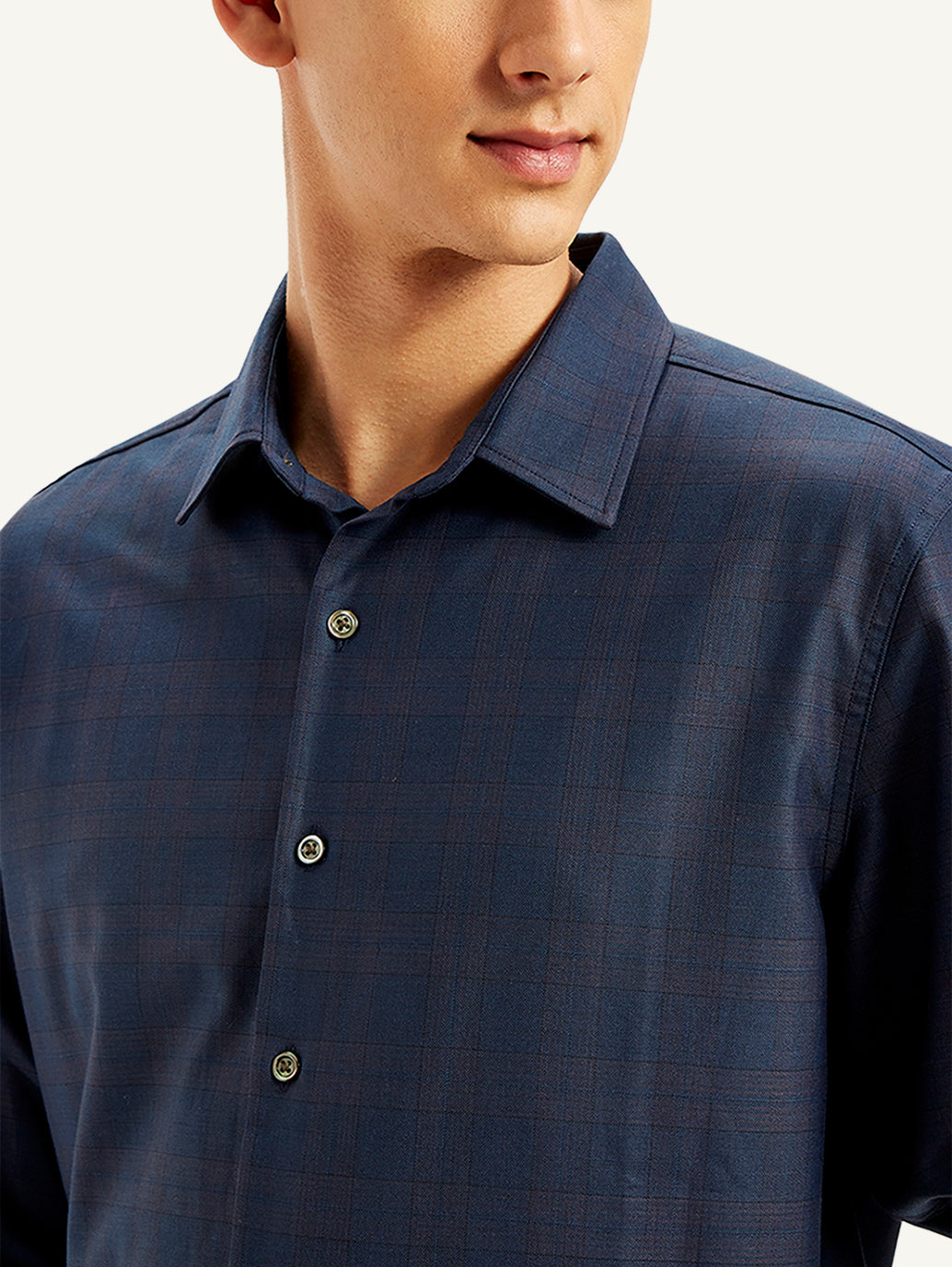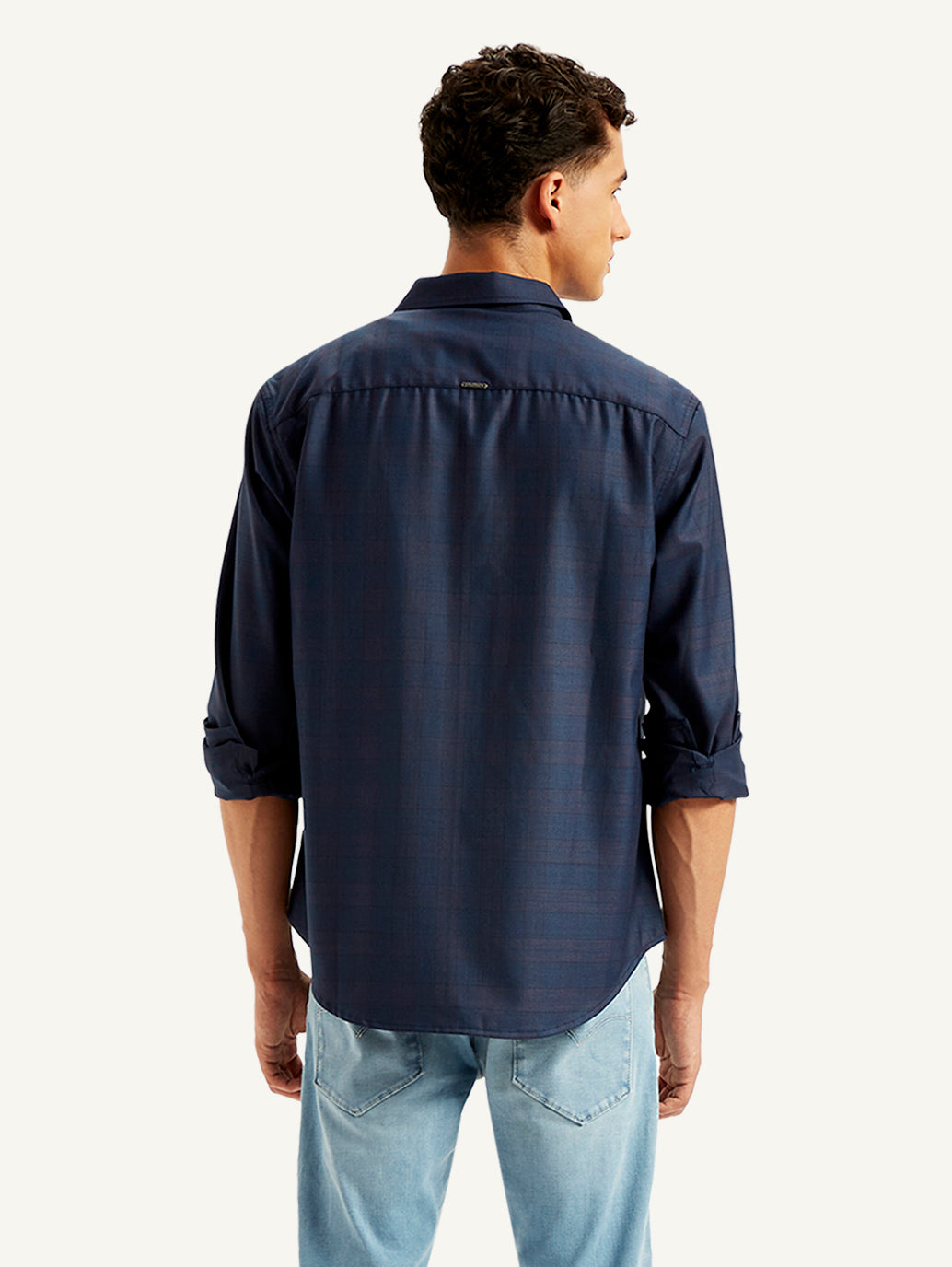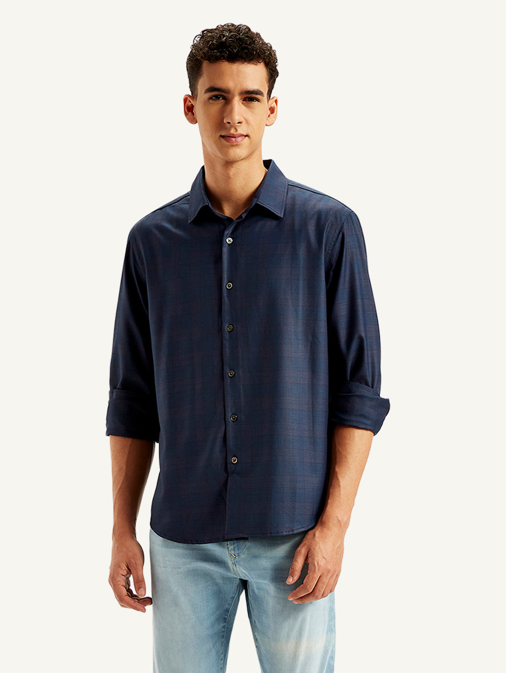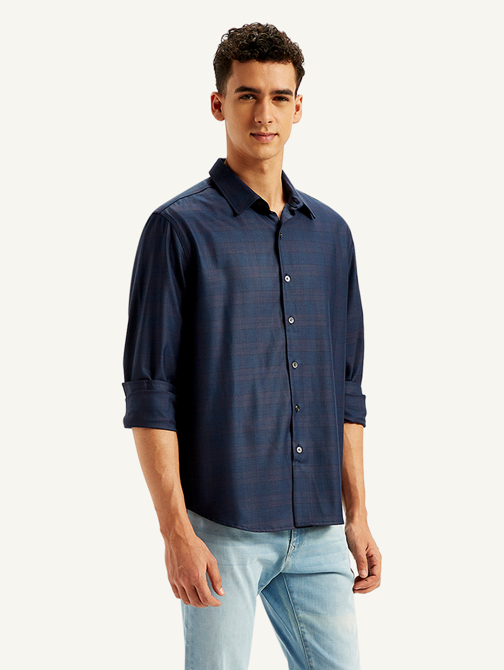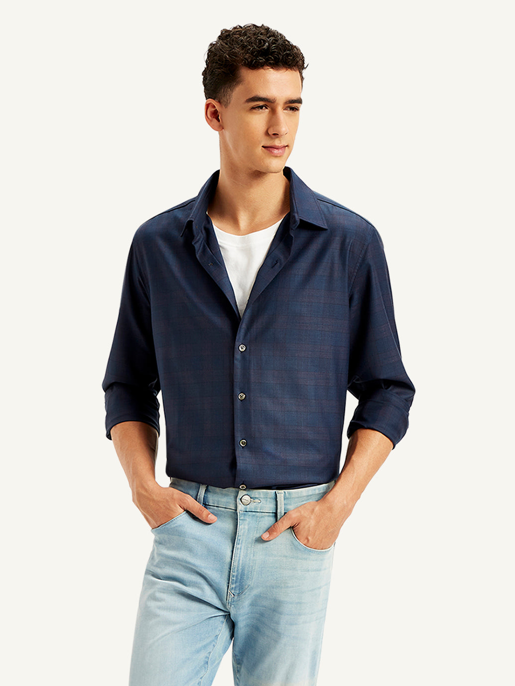 Level up your basics in Levi's. This navy shirt features full sleeves and simple detailing. The polyester blend makes this shirt super breathable, features checked pattern and slim fit.