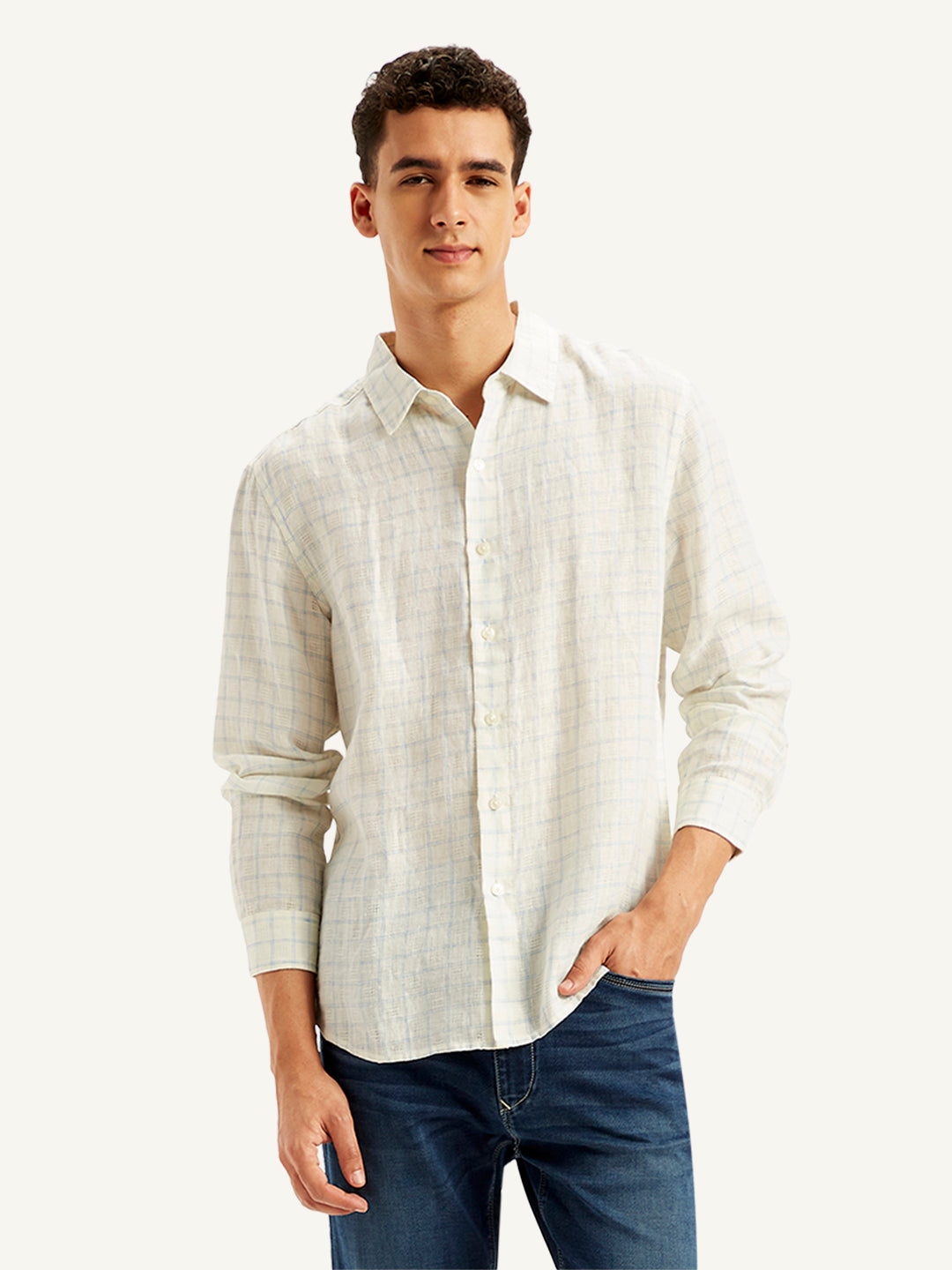 Understated, refined, and timeless sum up this regular fit-shirt by Levi's. Made from high-quality linen, this crisp checked pattern shirt has just the right amount of personality. It featured a classic spread collar and smart full sleeves. Practical and versatile, it will quickly become a firm favorite.