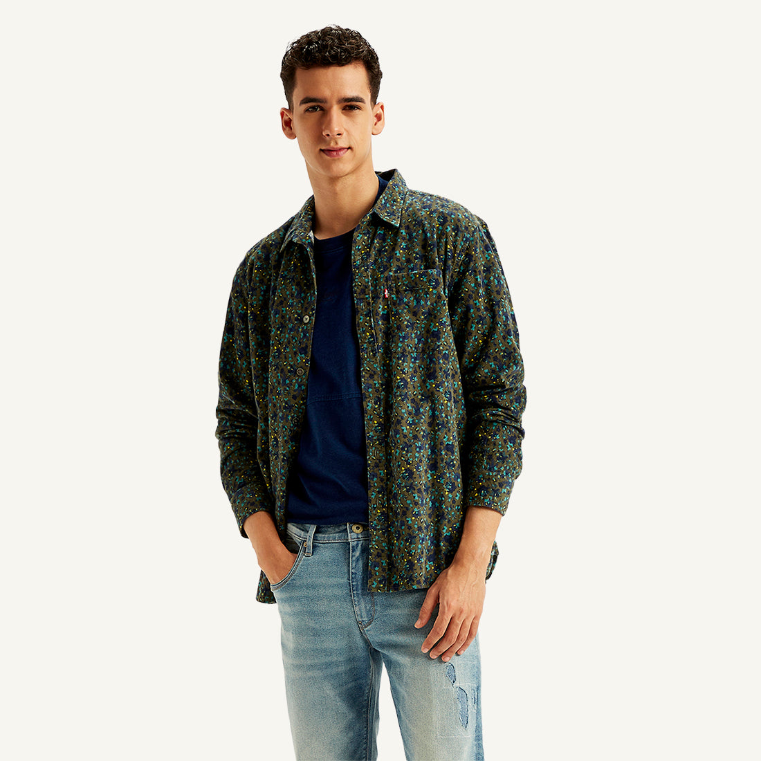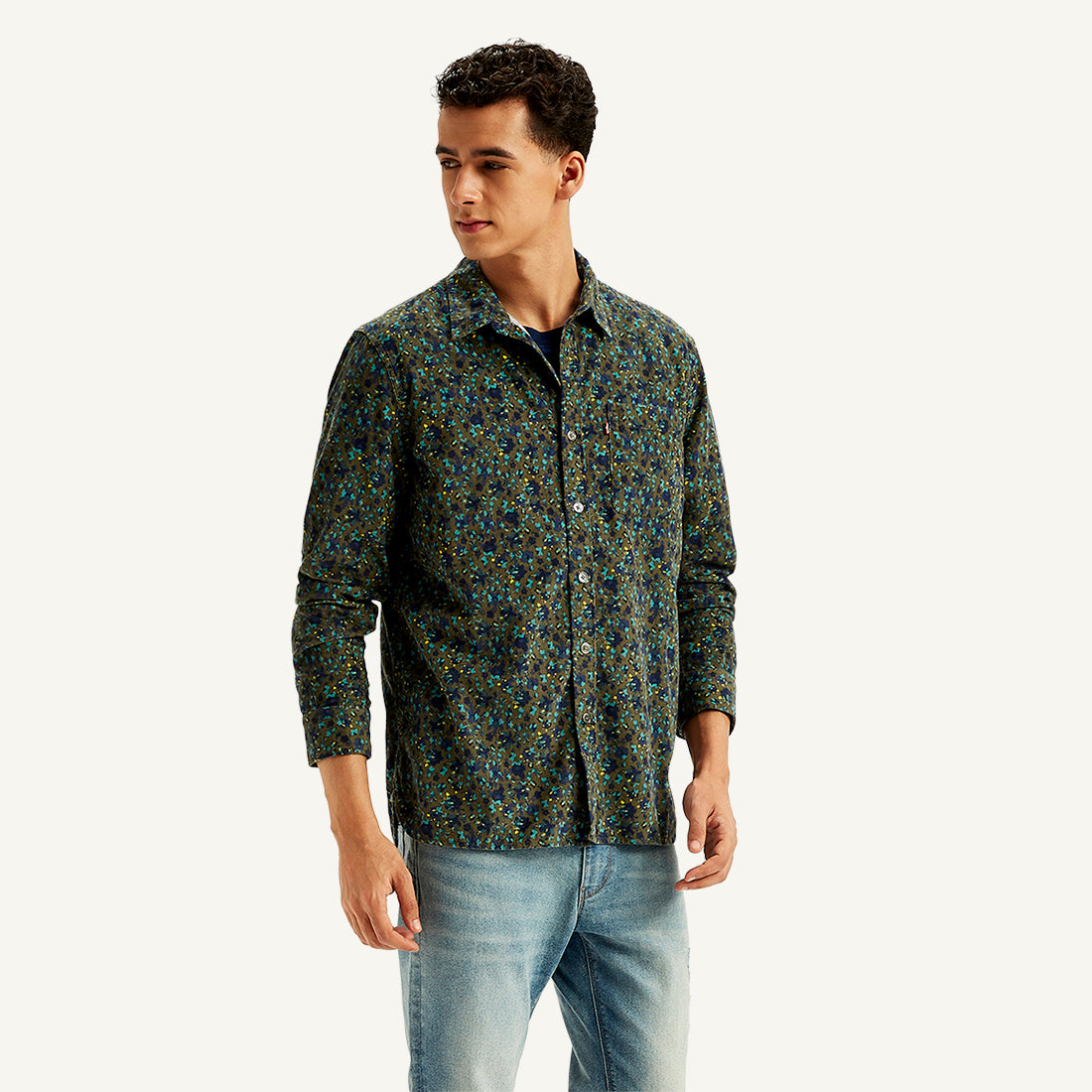 A slim fit, full sleeves, and a classic spread collar make this green shirt by Levi's, a staple. The cotton fabric is super soft for everyday wear and gives a flattering slim fit.