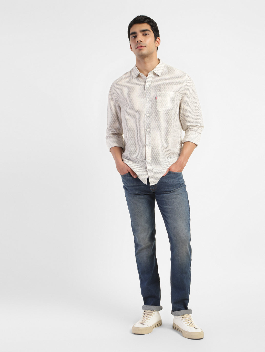 Levi's off-white button-down shirt in a geometric print is a must-have item for the modern man's closet. This classic spread collar and full sleeves make it perfect for pairing with denim or chinos alike.