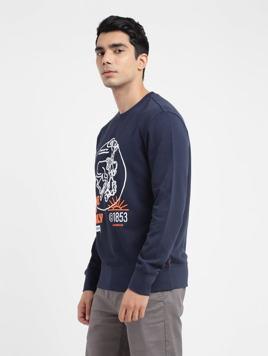 Men's Graphic Print Crew Neck Sweatshirt Navy