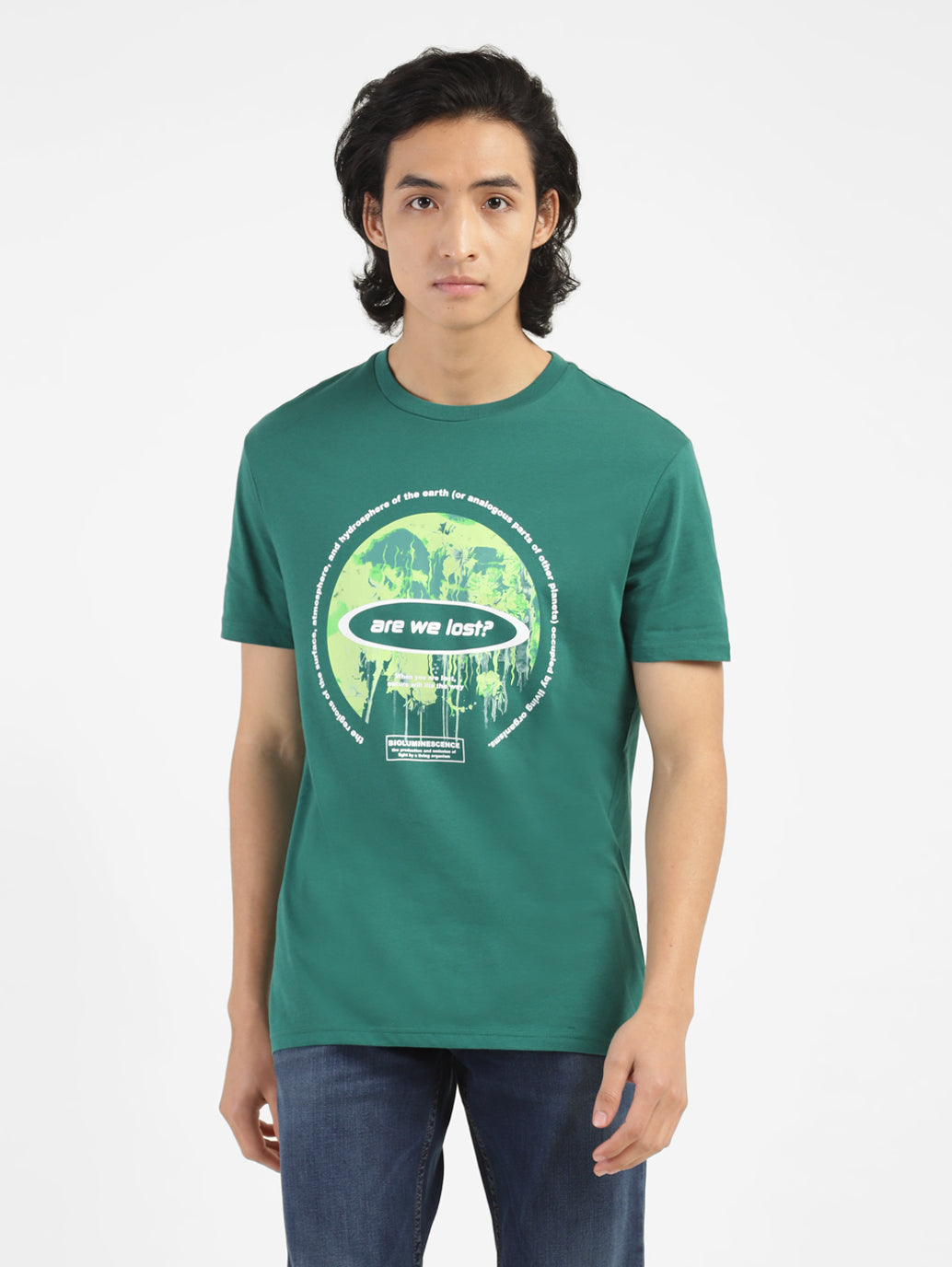 versatile and eye-catching, this slim fit tee makes for a great addition to your casual closet. with an understated graphic, this t-shirt for men adds a subtle layer of style to your clothing. crafted from soft cotton and featuring a snug crew neck, this tee makes for the perfect outdoor look.