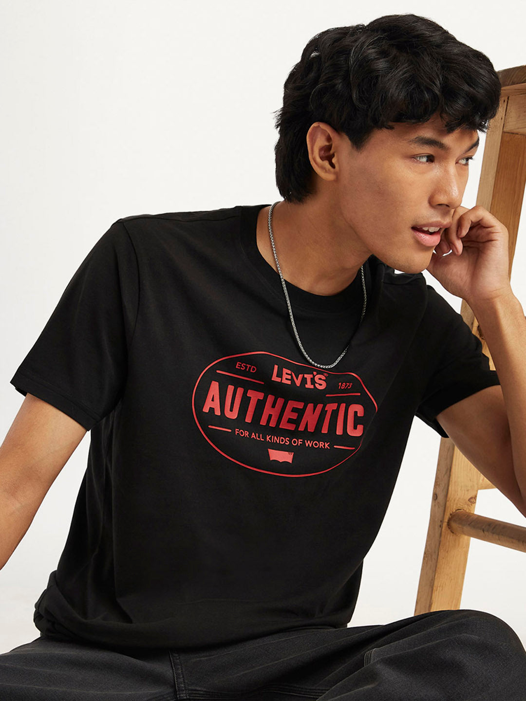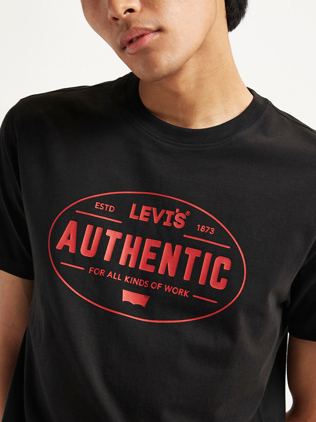 Step up your game and grab this latest t-shirt by Levi's for your wardrobe rotation. Ideal to wear with your jeans, shorts, or even your chinos, this black cotton t-shirt is designed to be versatile. Standard crew neck and short sleeves in a slim fit.