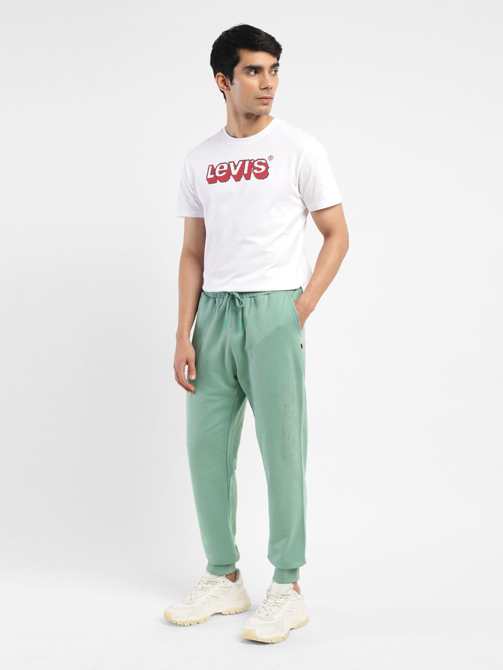 These Levi's mid rise waist joggers are perfect to wear whether you're heading out for an evening jog or lounging around at home. Designed for a jogger, it features a brand logo pattern and comes in the color green. Pair these joggers with a graphic tee and white sports shoes to create your look for the evening.