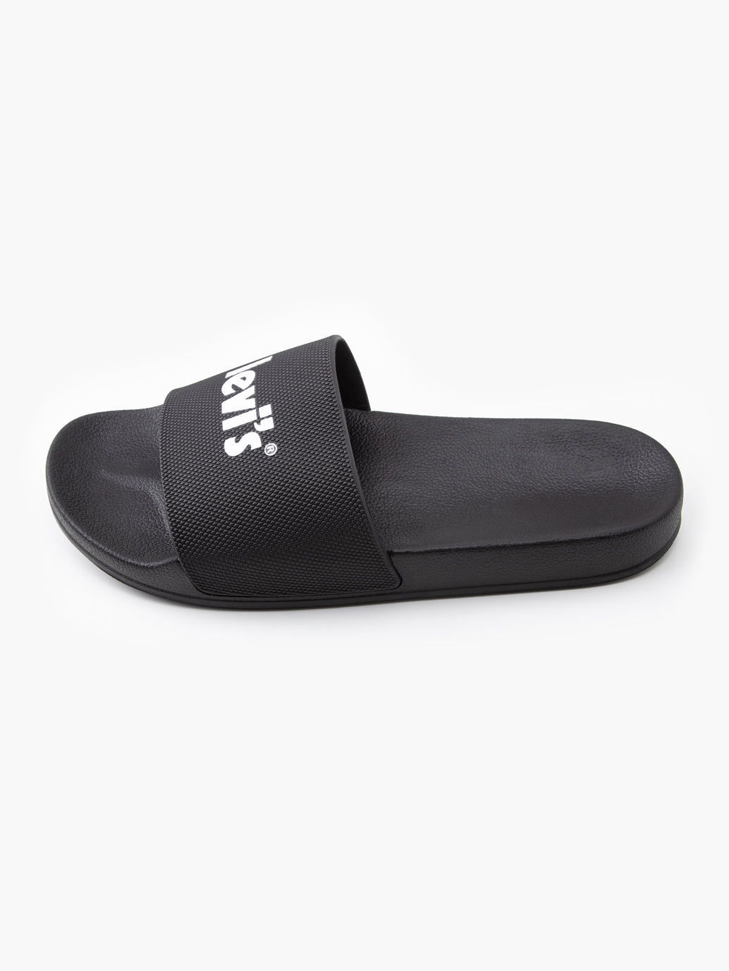 Lounge around the home in style by opting for these smart and comfy Levi's Men's June Poster Slides. Enjoy unmatched comfort, thanks to the rubber upper and a EVA sole of these slides.Wear these black slides with your favourite lounge apparel in the summertime.