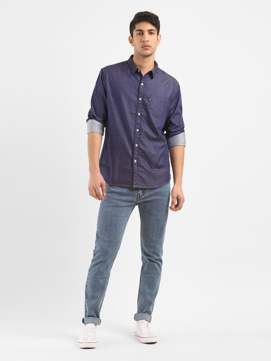 A timeless staple, this Men's Printed Navy Blue Slim Fit Shirt is a great addition to your collection. This Navy Blue shirt comes with a All over printed pattern. Featuring Full sleeves, this shirt is made from soft Pure Cotton material and boasts a comfy Slim fit.