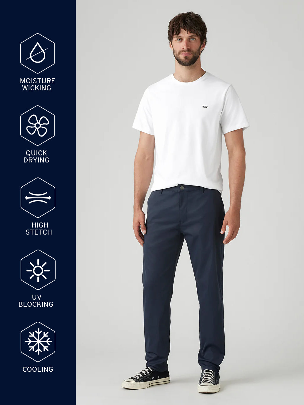 Stand out from the crowd in this navy regular fit trousers from Levi's. This pair is crafted from polyester fabric that makes them easy to wear and keeps you comfortable throughout the day. They feature a flattering mid rise.