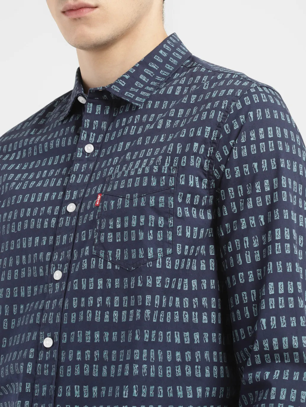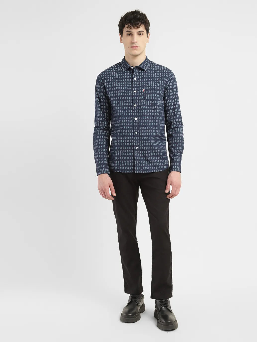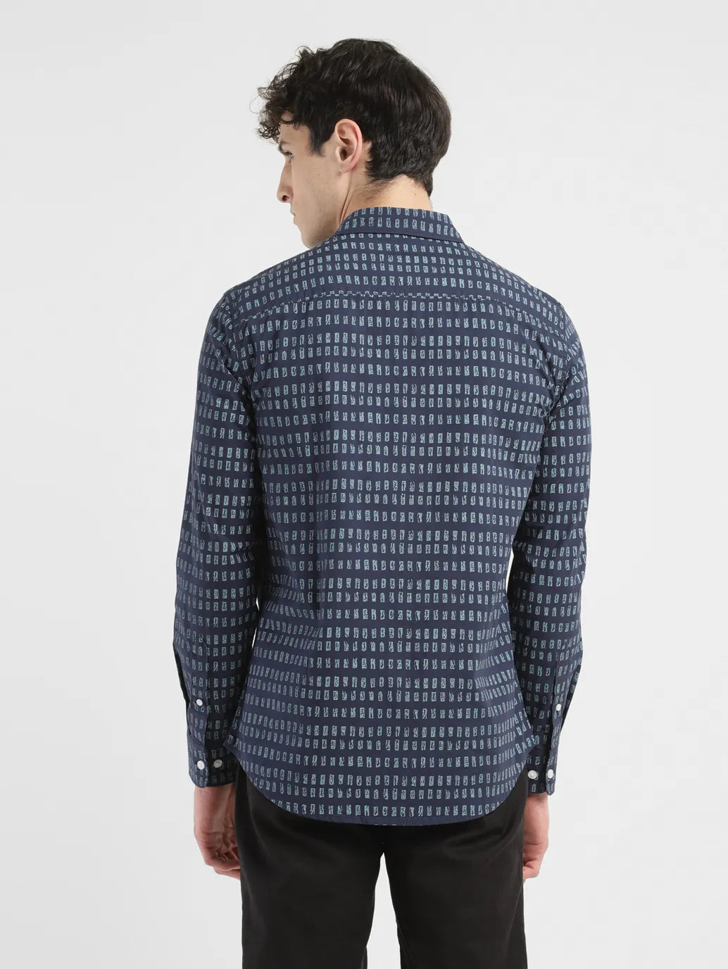 Take your style to new heights of comfort with Levi's. A casual workwear and weekend favorite, this navy shirt is made of durable pure cotton fabric and features a print pattern. The easy-to-wear collar and details add a laidback edge to this everyday essential. 1. Classic spread collar 2. Full sleeves 3. Versatile slim fit shirt
