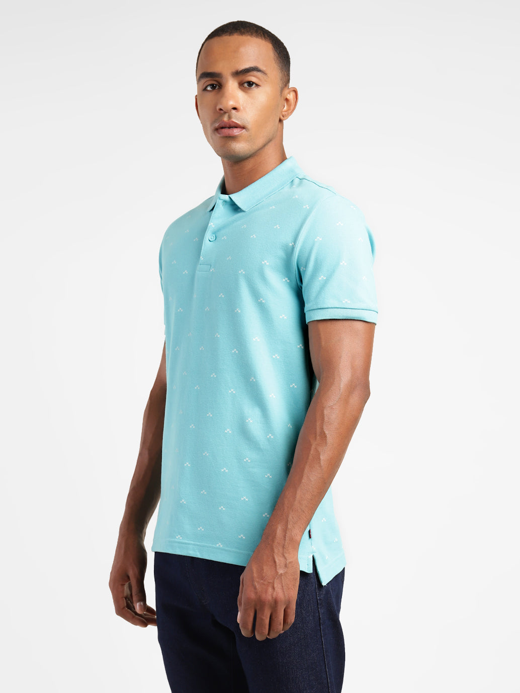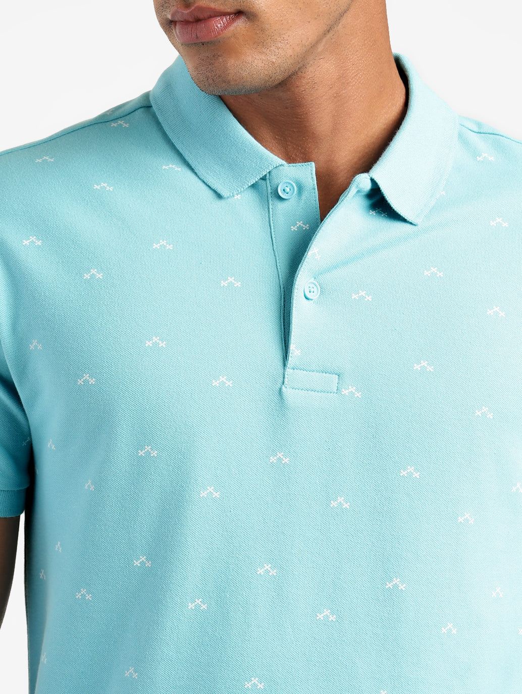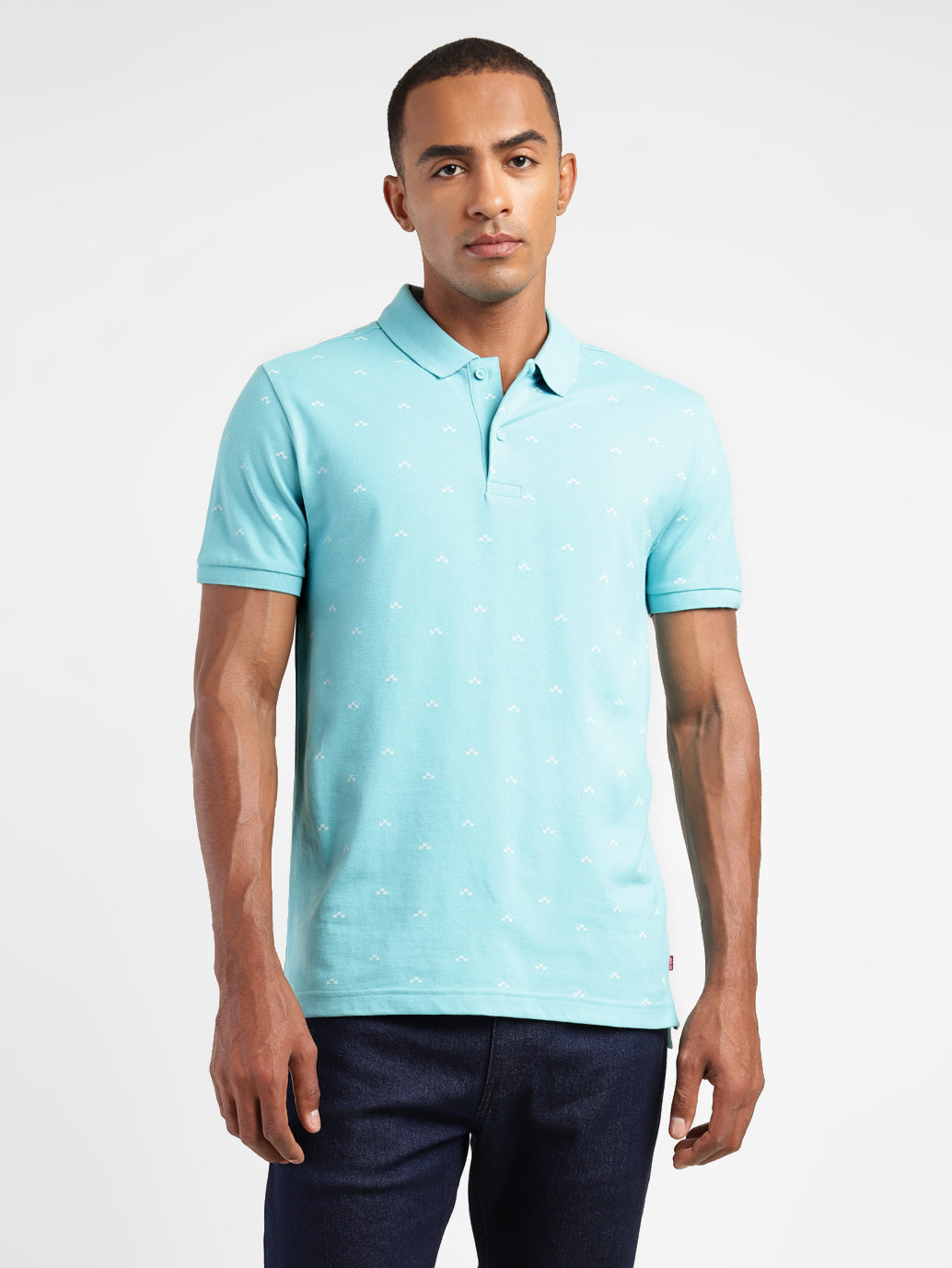 - Features a polo collar and short sleeves