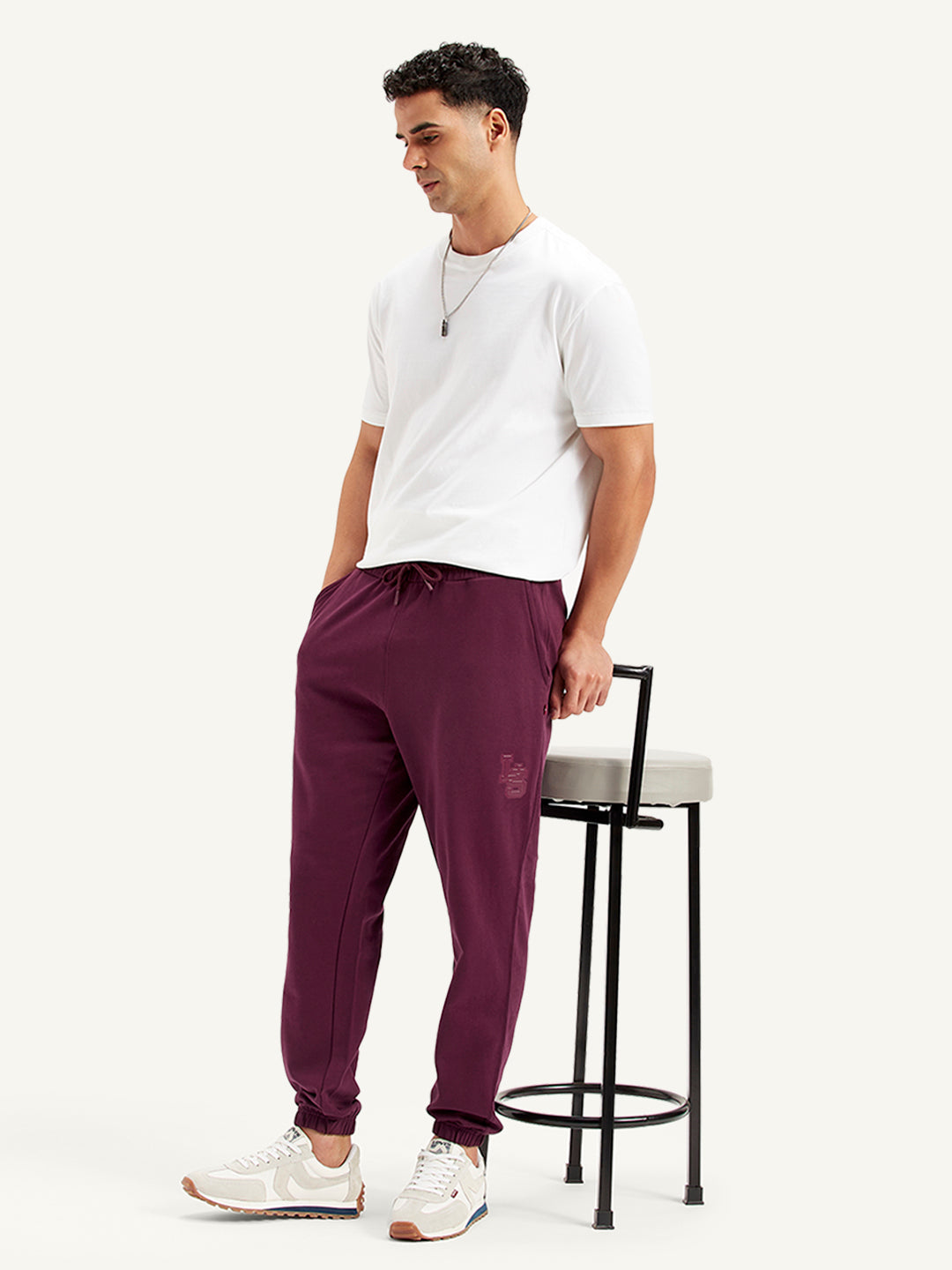 These Levi's mid rise waist joggers are perfect to wear whether you're heading out for an evening jog or lounging around at home. Designed for a jogger, it features a solid pattern and comes in the color purple.