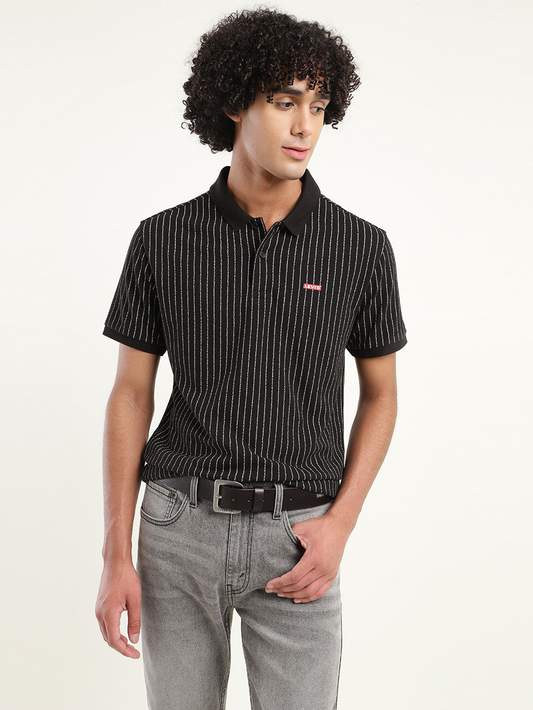 Made from good quality pure cotton, this easygoing Levis black t-shirt is perfect to add to your casual collection. Features a polo collar and a solid pattern.