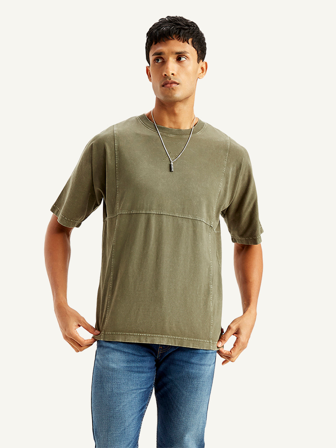 1. An oversized T-shirt in the shade green and cotton fabric.