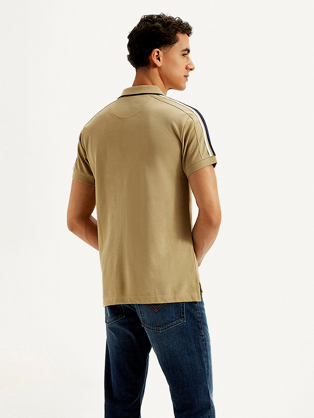 Step up your game and grab this latest t-shirt by Levi's for your wardrobe rotation. Ideal to wear with your jeans, shorts, or even your chinos, this brown cotton t-shirt is designed to be versatile. Standard polo collar and half sleeves in slim-fit.