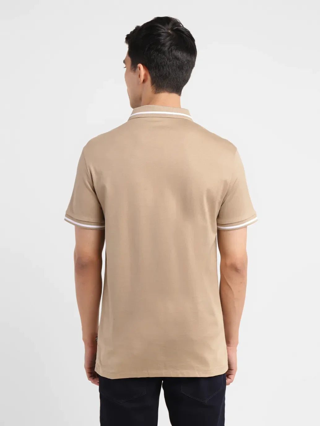 Step up your game and grab this latest t-shirt by Levi's for your wardrobe rotation. Ideal to wear with your jeans, shorts, or even your chinos, this beige pure cotton t-shirt is designed to be versatile. We recommend keeping it simple and layering it with a solid-colored shirt for a casual night out with your friends. 1. Slim fit essential 2. Features a solid pattern in pure cotton 3. Standard polo collar and short sleeves 4. Redloop collection