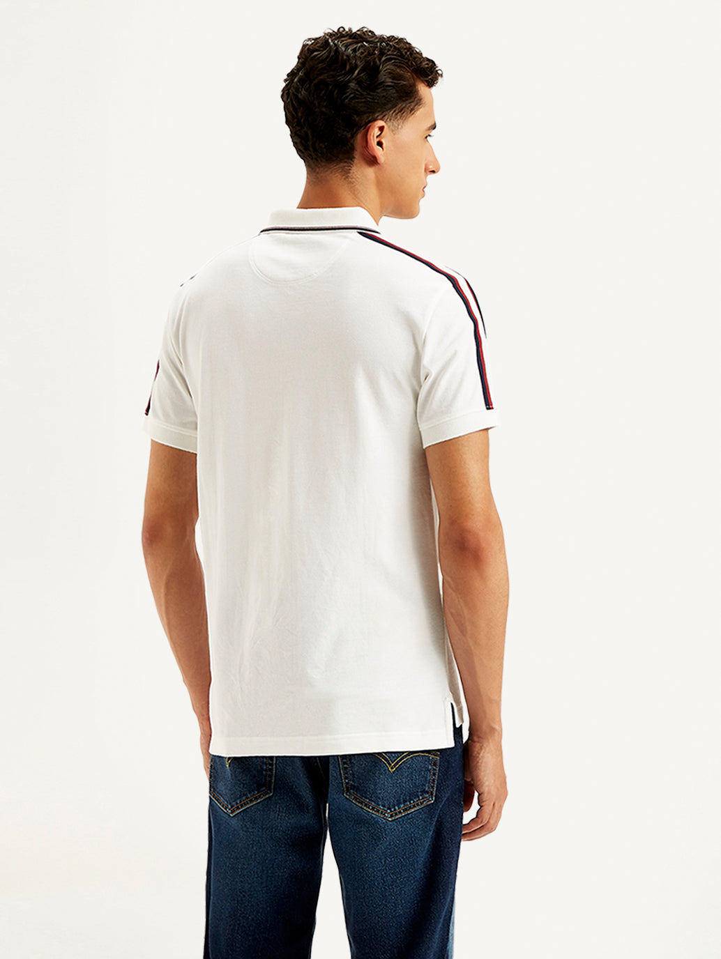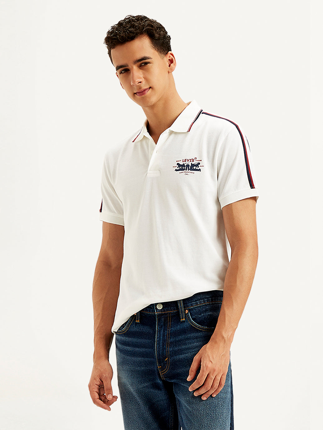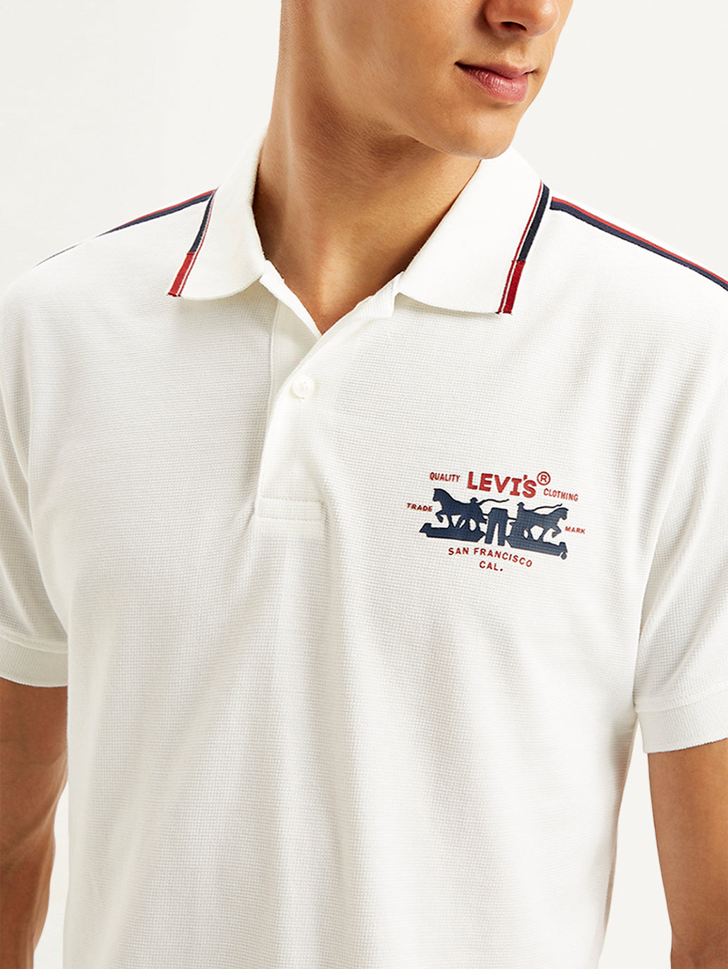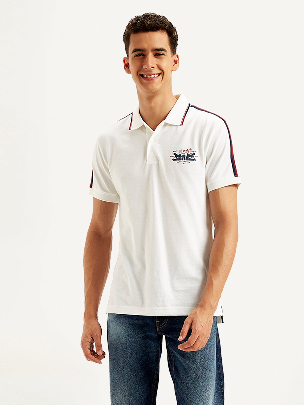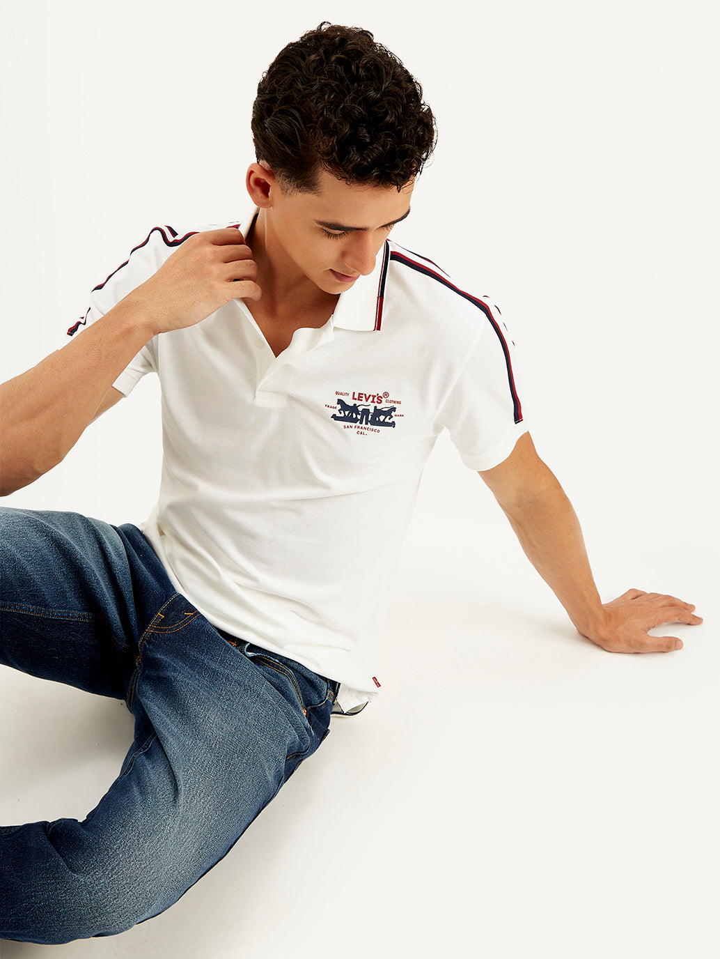 Made from good quality cotton, this easygoing Levis white t-shirt is perfect to add to your casual collection. Features a polo collar and a solid pattern.
