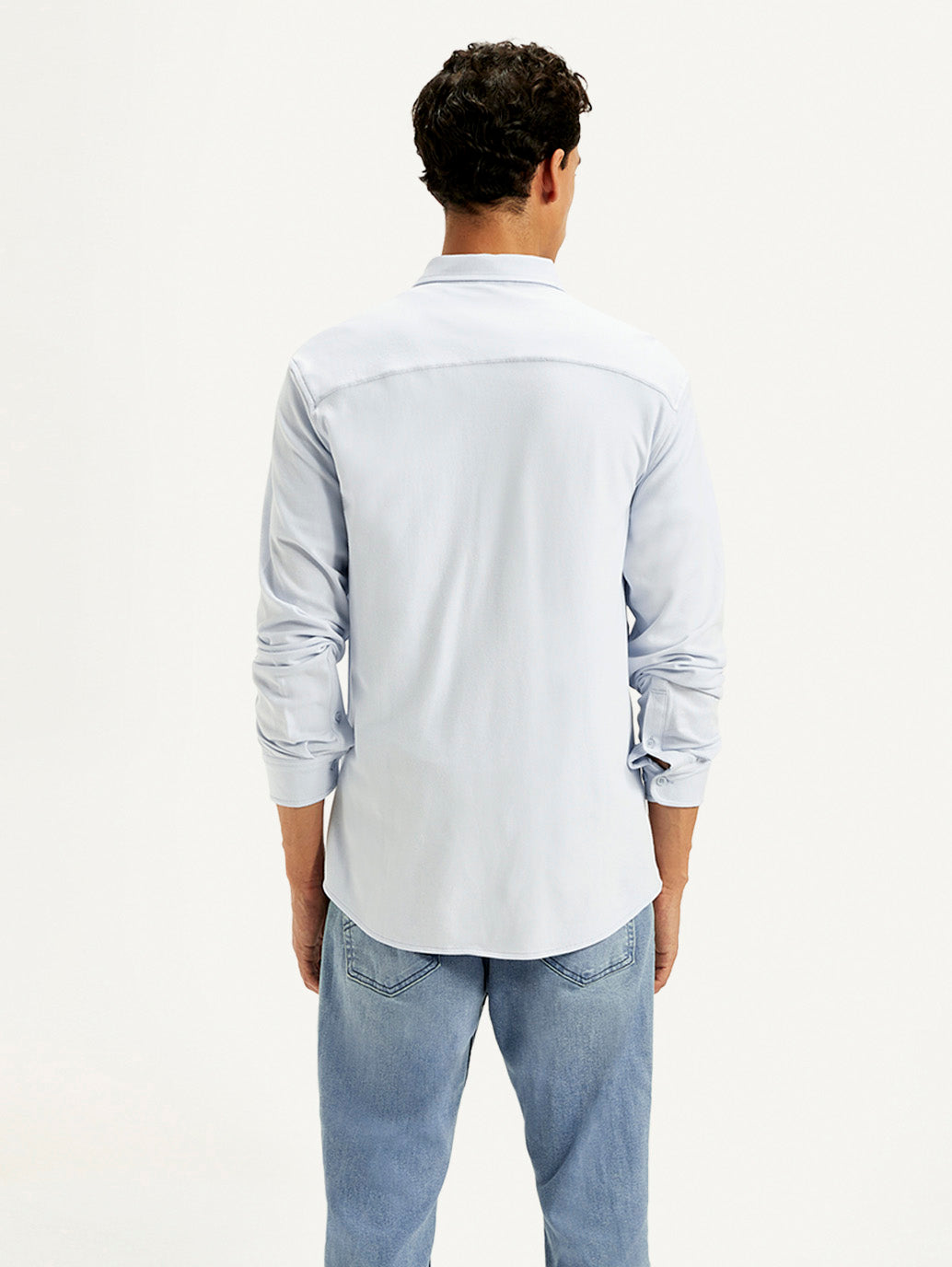 Class up your essentials with this Levi's shirt. The classic collar neck and solid pattern lend an elegant touch, while its cotton fabric will keep you comfortable all day long. It is perfect for wearing under a jacket with jeans.