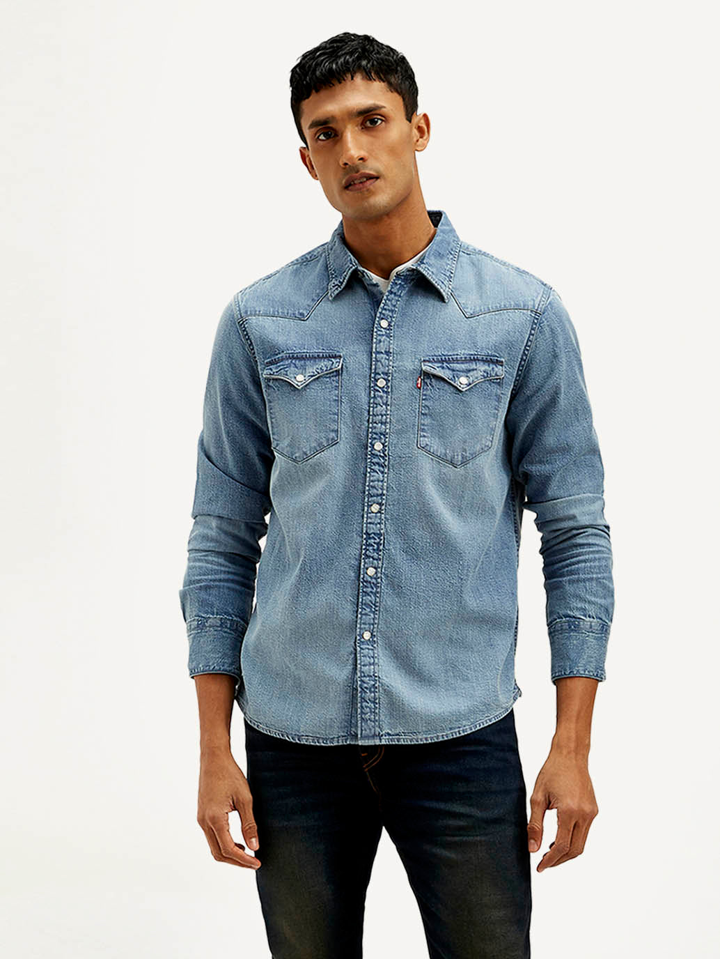 Class up your essentials with this Levi's shirt. The classic spread collar and solid pattern lend an elegant touch, while its cotton fabric will keep you comfortable all day long. It is perfect for wearing under a jacket with jeans.