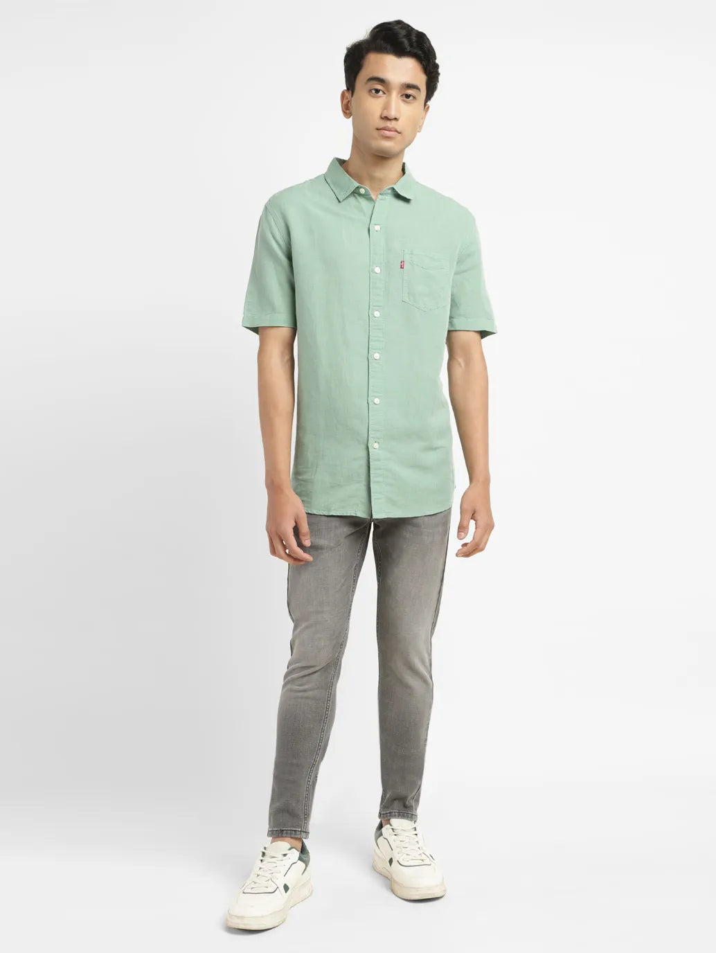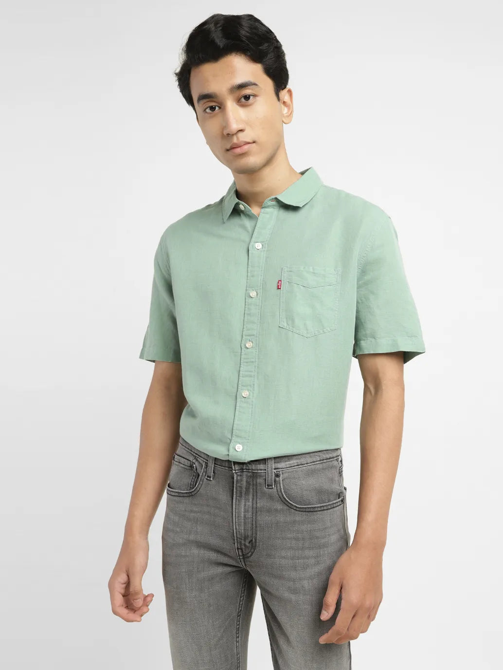 Take your style to new heights of comfort with Levi's. A casual workwear and weekend favorite, this green shirt is made of durable linen blend fabric and features a solid pattern. The easy-to-wear collar and details add a laidback edge to this everyday essential.