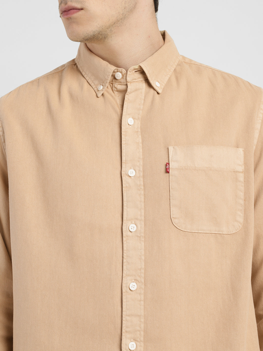 Class up your essentials with this Levi's shirt. The classic collar neck and solid pattern lend an elegant touch, while its pure cotton fabric will keep you comfortable all day long. It is perfect for wearing under a jacket with jeans. 1. Must have full sleeves-shirt 2. Breathable pure cotton fabric 3. Stylish solid pattern and comes in beige color