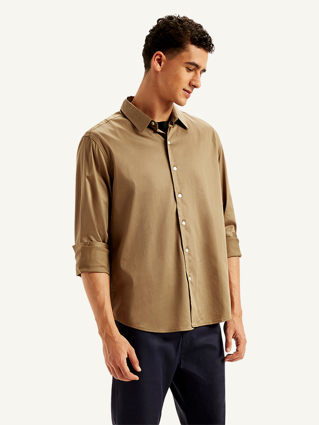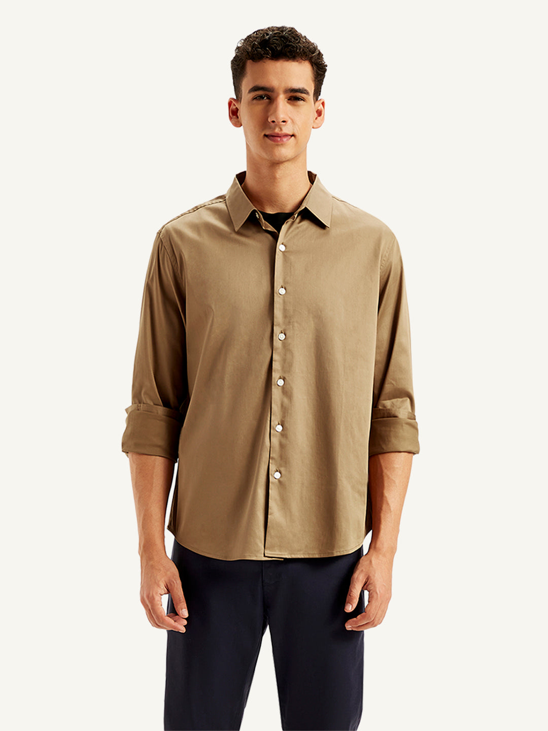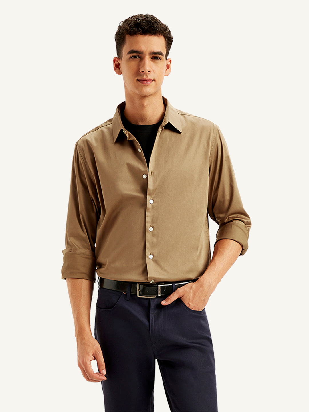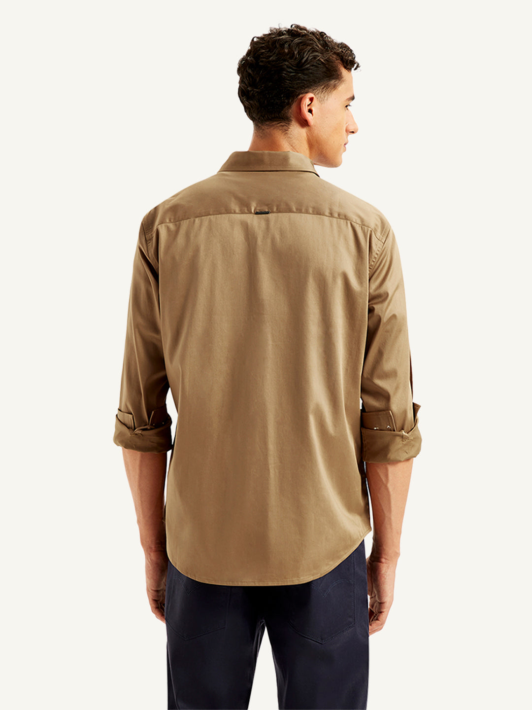 A slim fit, full sleeves, and a classic spread collar make this brown shirt by Levi's, a staple. The cotton fabric is super soft for everyday wear and gives a flattering slim fit.