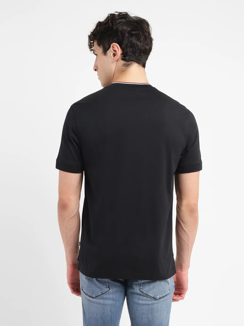Keep it casual and cool with this trending T-shirt from Levi's. Made from good quality pure cotton, this t-shirt features a collar neck and short sleeves. Easy to wear and style, we recommend complementing this t-shirt with a classic denim jacket and a pair of white sneakers. 1. Slim fit ensures comfort 2. Designed with a solid pattern. 3. Casual staple in the color black. 4. Keep it casual and cool with this trending T-shirt from Levi's Redloop collection.